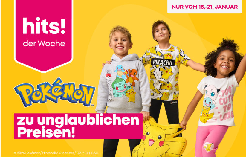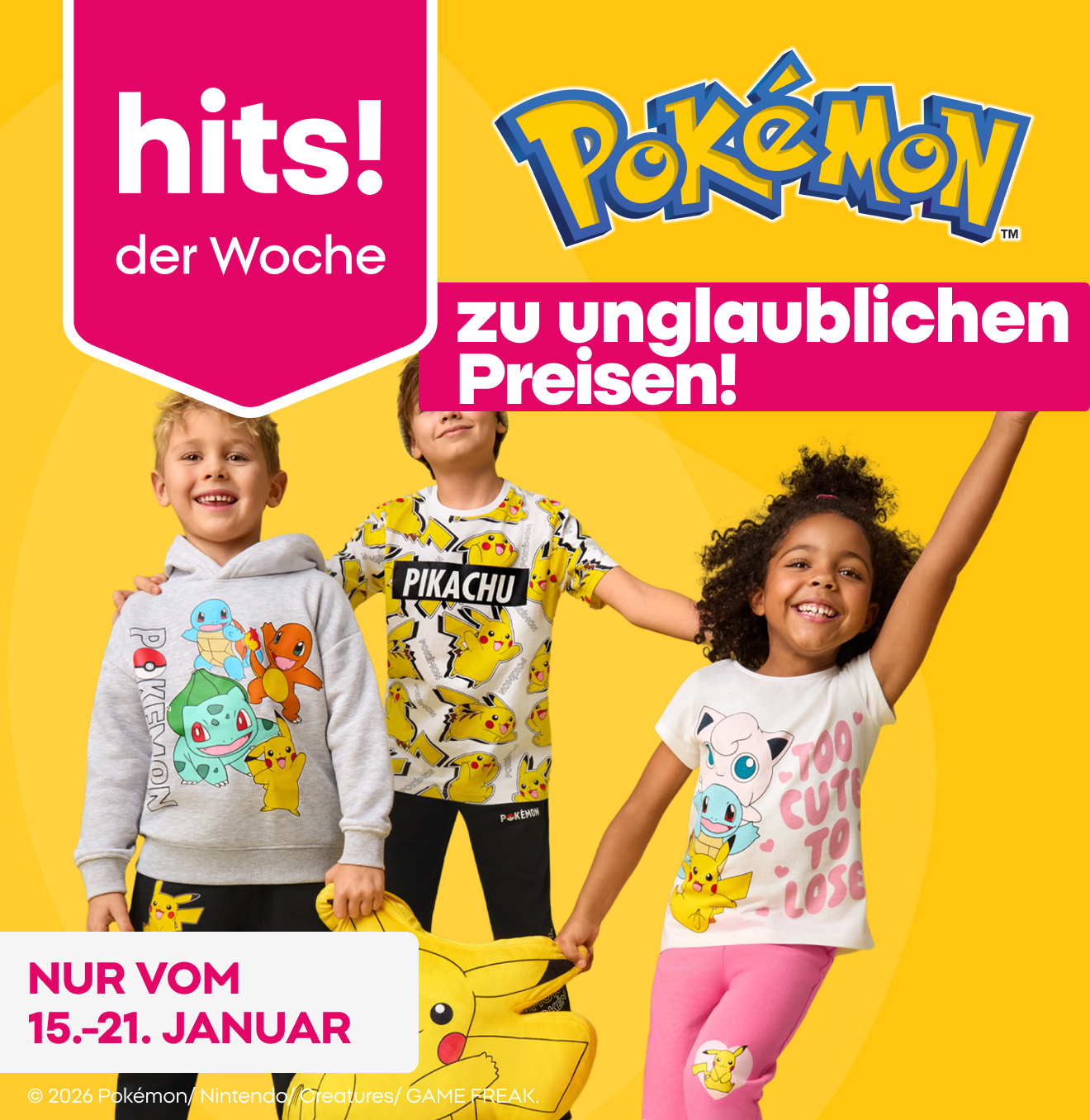 Komm bei Pepco vorbei und entdecke die neueste Pokémon-Kollektion! In den Filialen findest du bequeme Kleidung und Accessoires für kleine und große Pokémon-Fans.