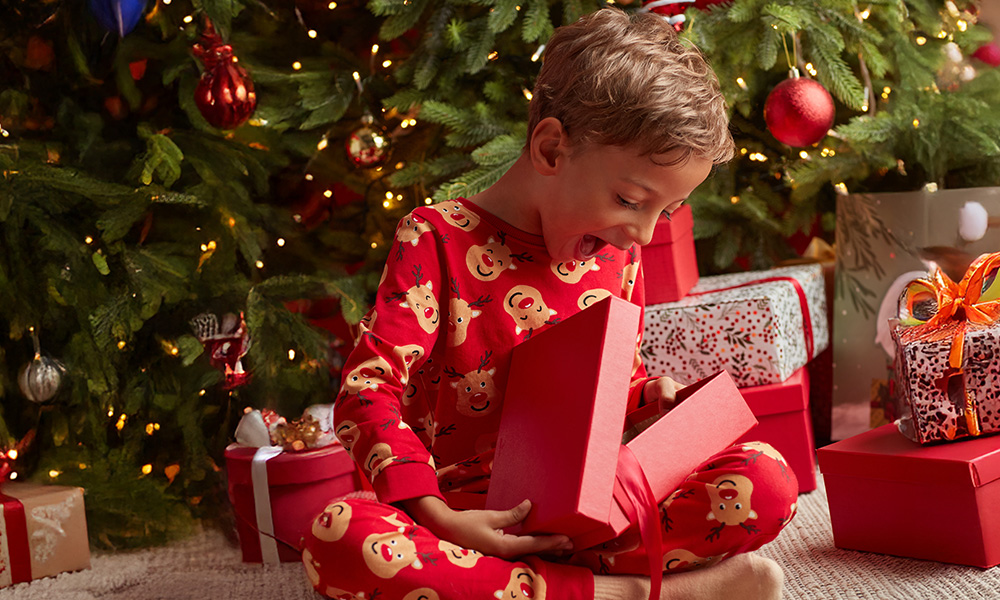 Für die Kleinen – Bodys mit Weihnachtsmotiven, Pyjamas mit Rentieren, Sets mit Teddybären und weiche Hausschuhe. Für die Größeren – Sweatshirts mit coolen Prints, warme Socken und bequeme Trainingsanzüge. Achte auf die Materialien und Stoffe – greife am besten zu Baumwolle, denn sie ist atmungsaktiv, leicht, pflegeleicht und angenehm weich.