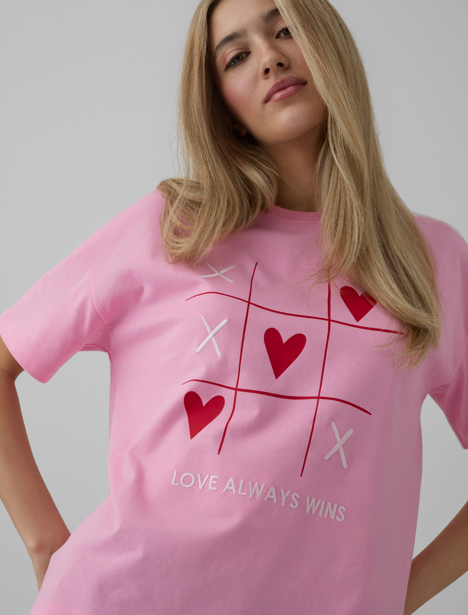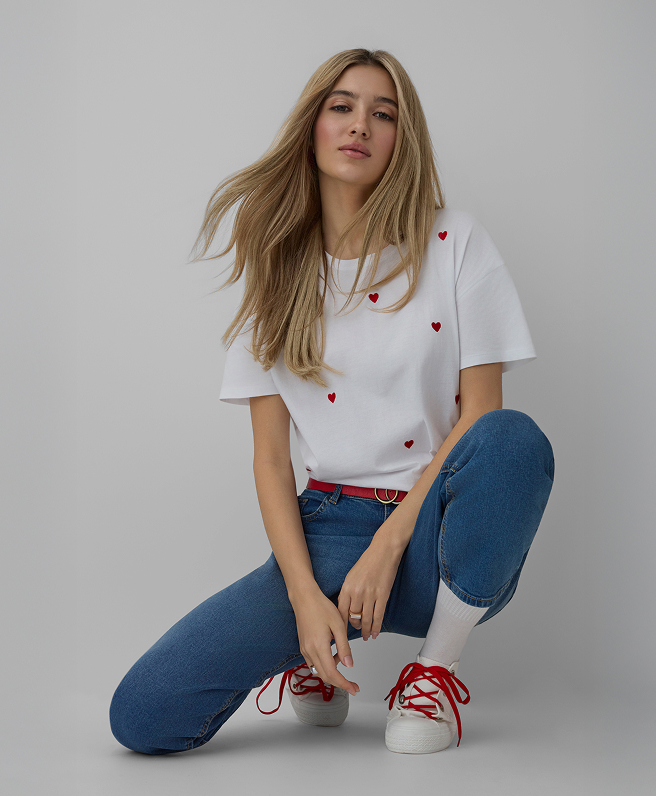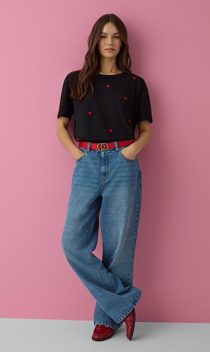Entdecke die neueste Damenkollektion von Pepco, in der Valentinstagsmotive einen neuen, frischen Charakter erhalten. Rosa durchbricht das klassische Rot, und Streifenmuster, collageartige Prints sowie subtile Details ziehen die Blicke auf sich und verleihen der Kollektion ihren besonderen Charakter.