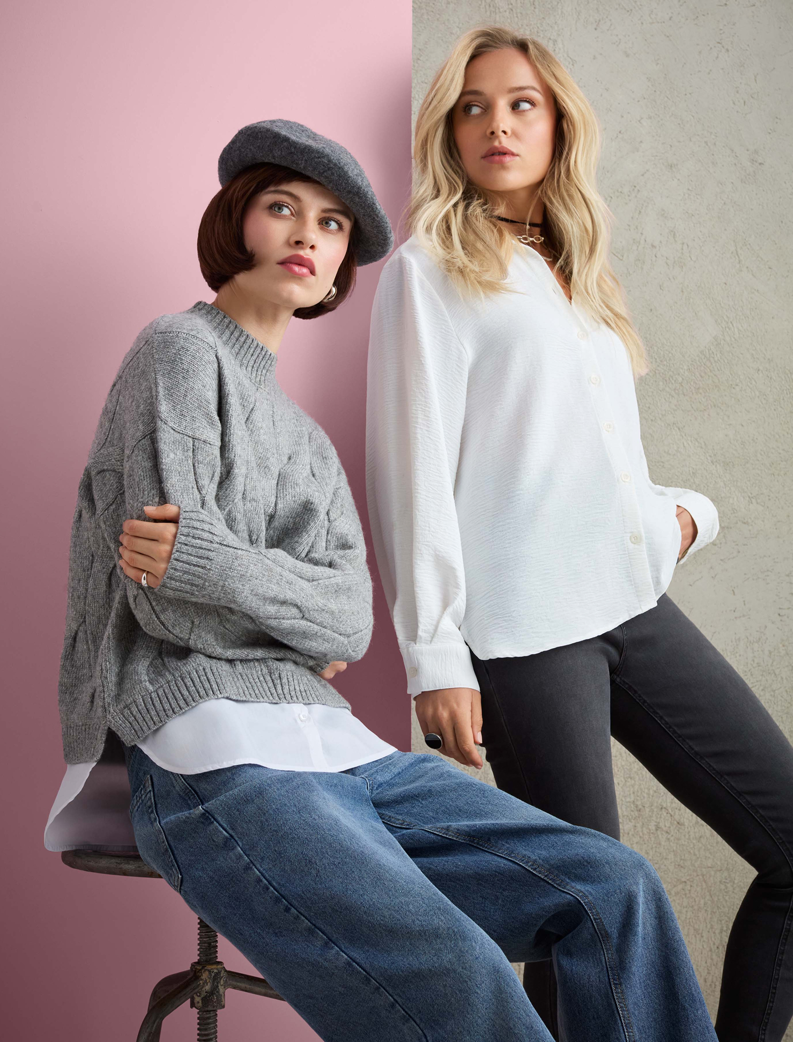 Entdecke die neueste Damenmode-Kollektion. Darin findest du warme, weiche und stylische Pullover – perfekt für die Herbst- und Wintersaison – bequeme Outfits, die Minimalistinnen begeistern, sowie Hemden und Jeans, ideal für den Alltag. Stil ist hier, wie immer zu einem attraktiven Preis!