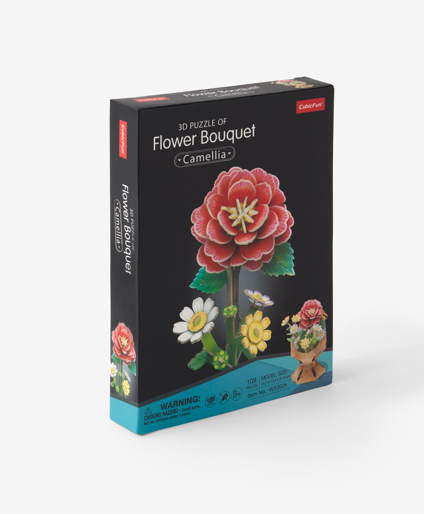 Das 3D-Puzzle Blumen ist ein Set, mit dem sich ein Strauß mit der Königin der Blumen – einer leuchtend roten Rose – gestalten lässt.