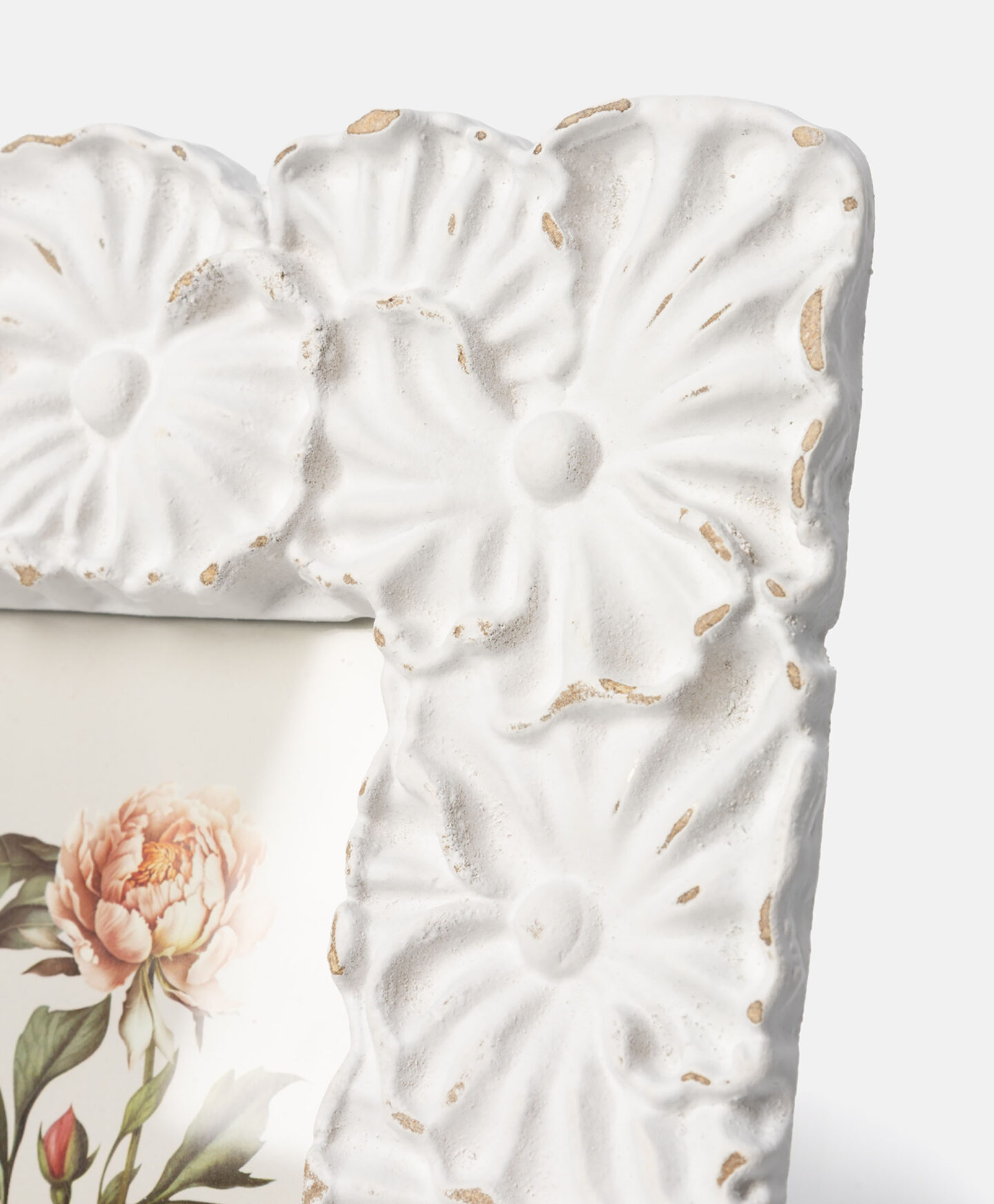 Der Bilderrahmen mit Blumenmotiv bewahrt Erinnerungen und ergänzt die Einrichtung auf dekorative Weise.