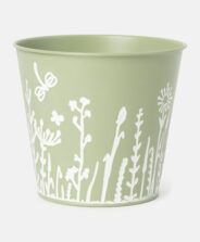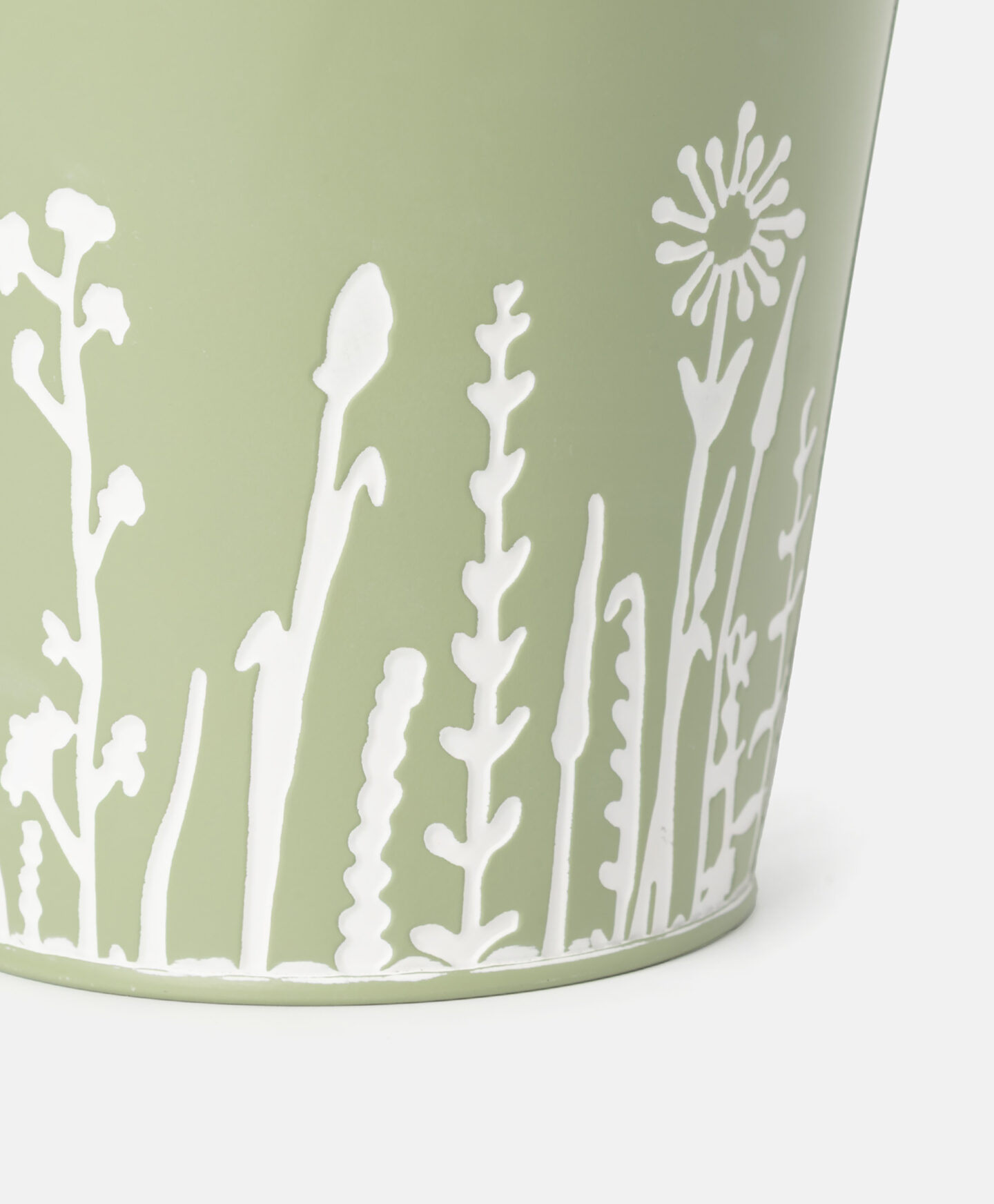 Der grüne Metall-Blumentopf mit Muster ist leicht, langlebig und wetterbeständig.