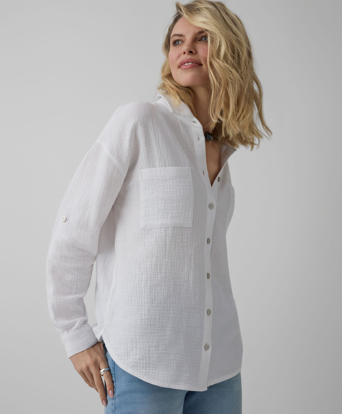 Eine Bluse aus 100% Baumwolle ist eine stilvolle Wahl für vielseitige Looks.