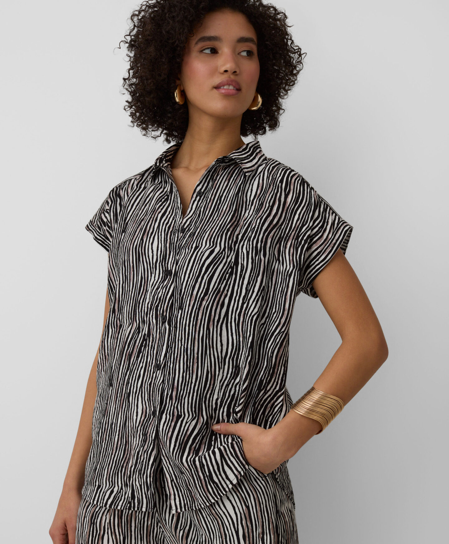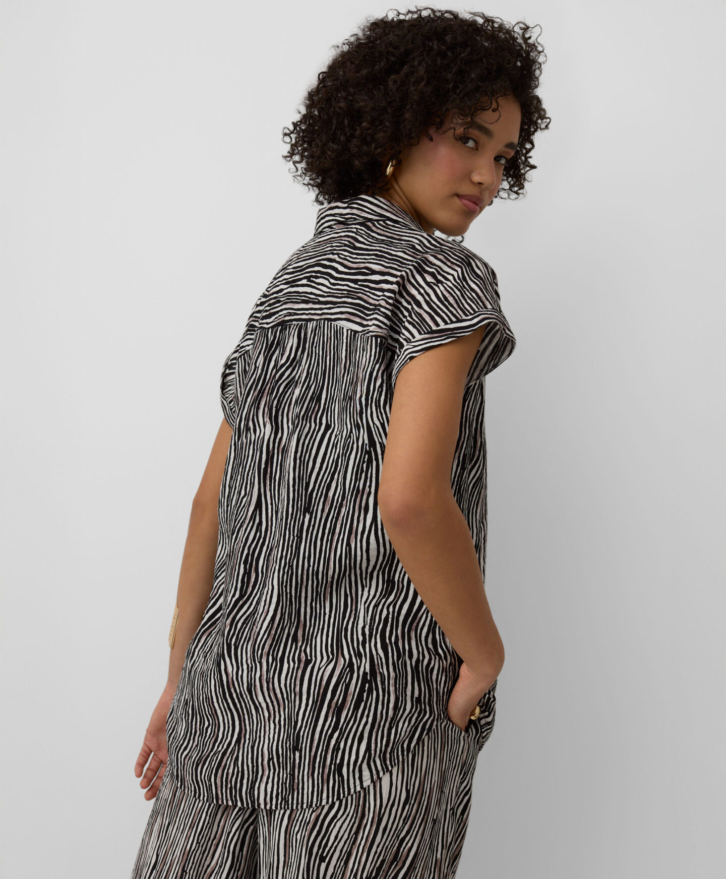 Die Bluse mit Muster aus 100% Viskose mit kurzen Ärmeln ist ideal für warme Tage.