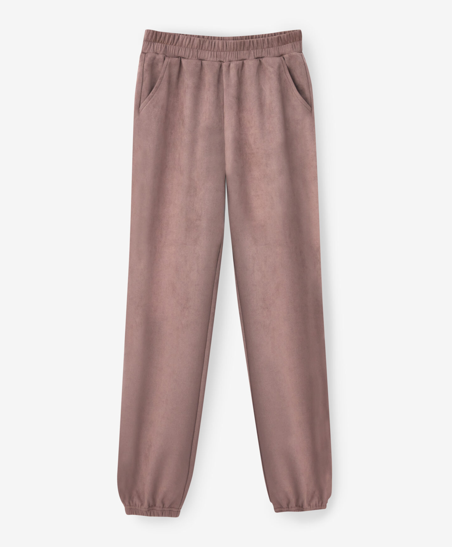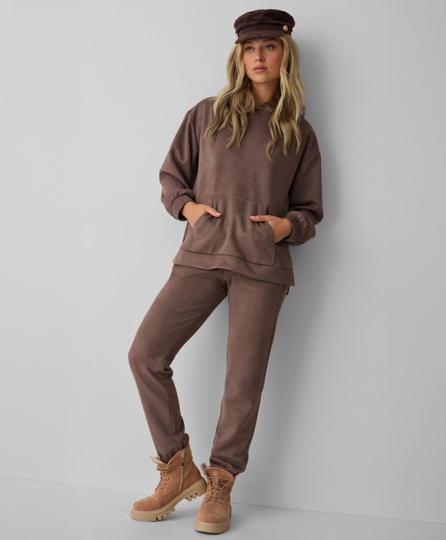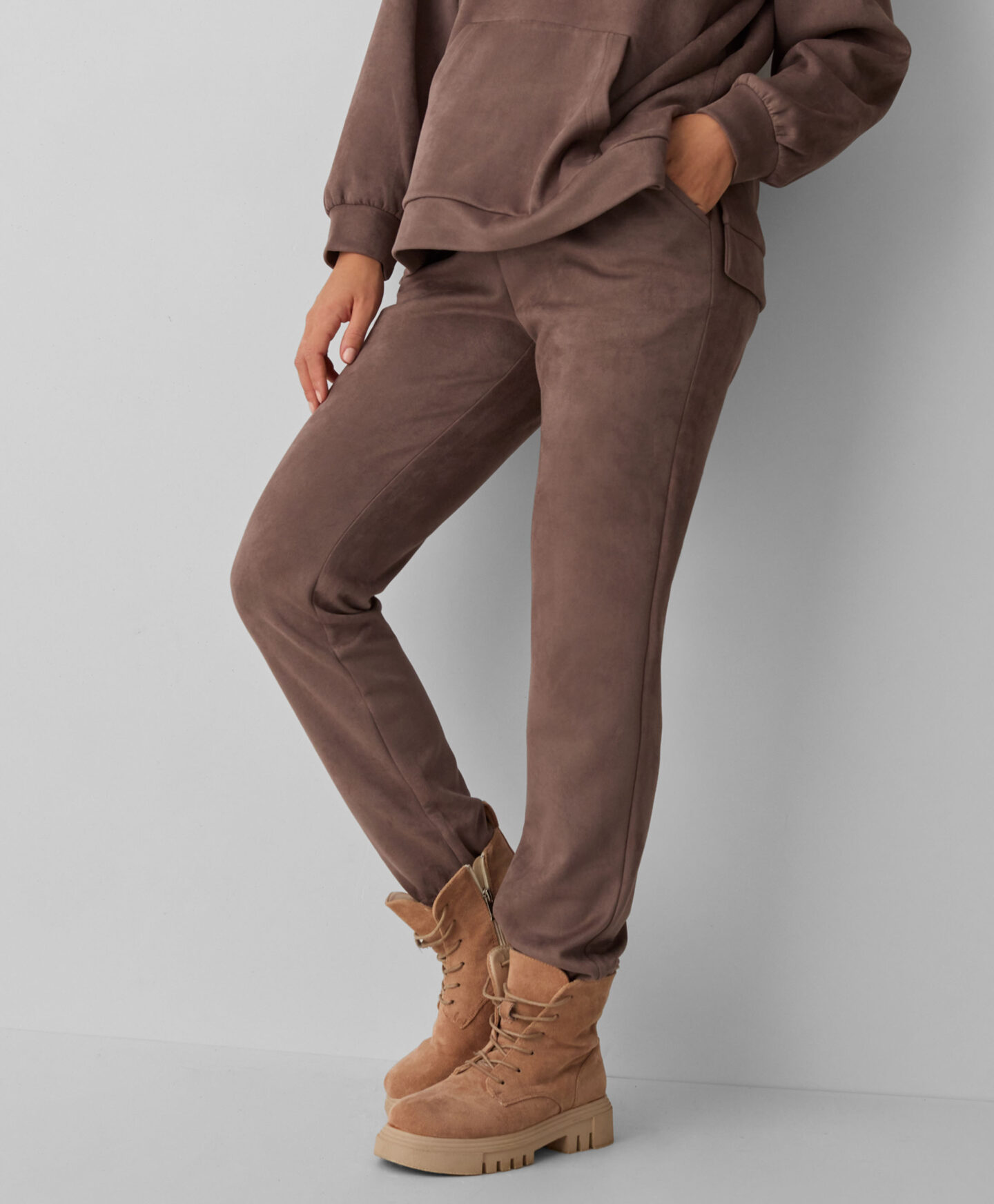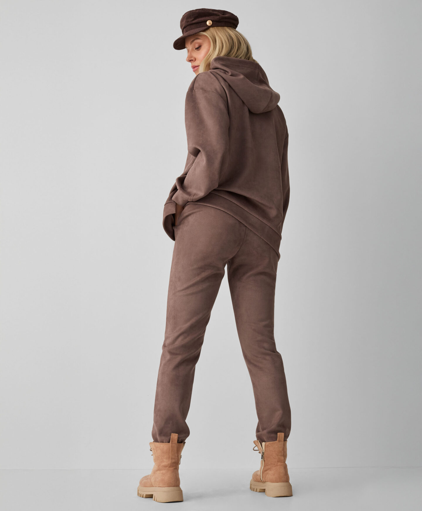 Braune Wildlederhose für Damen mit Taschen – Eine stylische und bequeme Option für den Alltag. Die Hose ist weich, angenehm zu tragen und perfekt für Herbstspaziergänge. Der zurückhaltende Braunton lässt sich ideal mit dem Hoodie aus der Kollektion kombinieren. Verschiedene Muster stehen zur Auswahl.