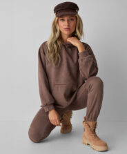 Braune Wildlederhose für Damen mit Taschen – Eine stylische und bequeme Option für den Alltag. Die Hose ist weich, angenehm zu tragen und perfekt für Herbstspaziergänge. Der zurückhaltende Braunton lässt sich ideal mit dem Hoodie aus der Kollektion kombinieren. Verschiedene Muster stehen zur Auswahl.