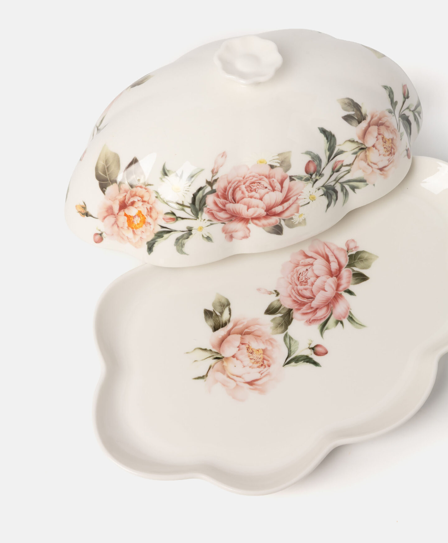 Die Butterschale mit Blumenmuster ergänzt das Geschirr der aktuellen Kollektion perfekt.