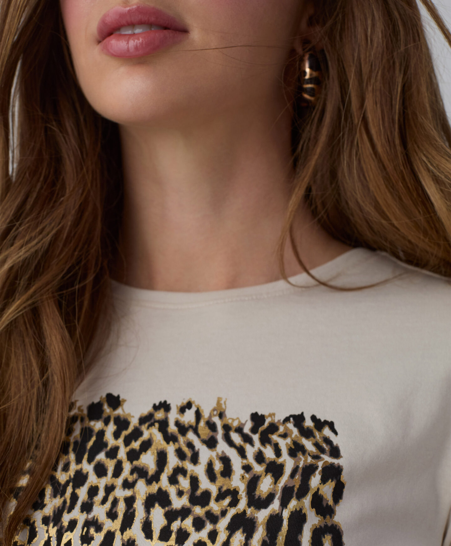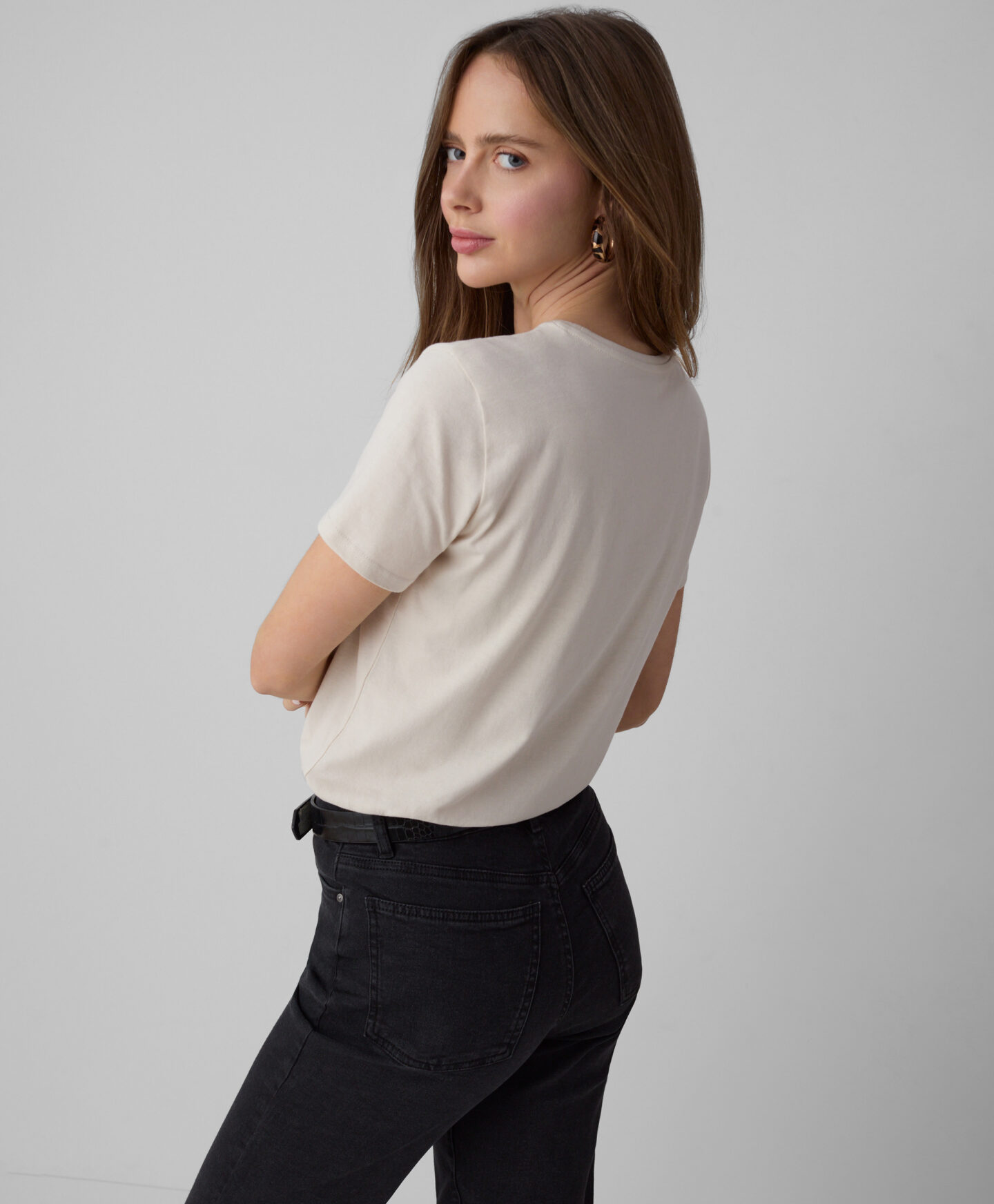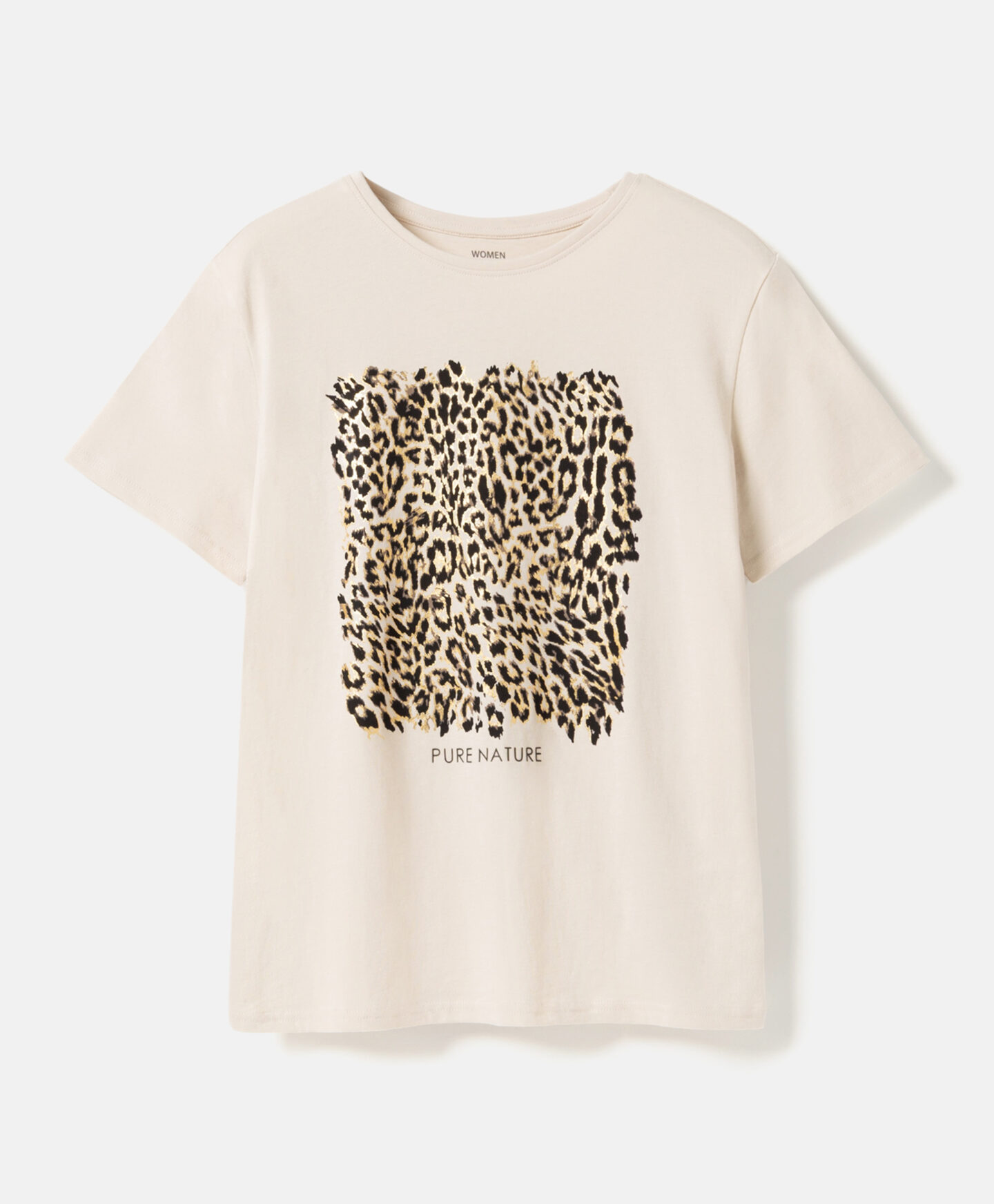 Das Damen-T-Shirt aus 100% Baumwolle mit Print ergänzt jedes Outfit stilvoll.