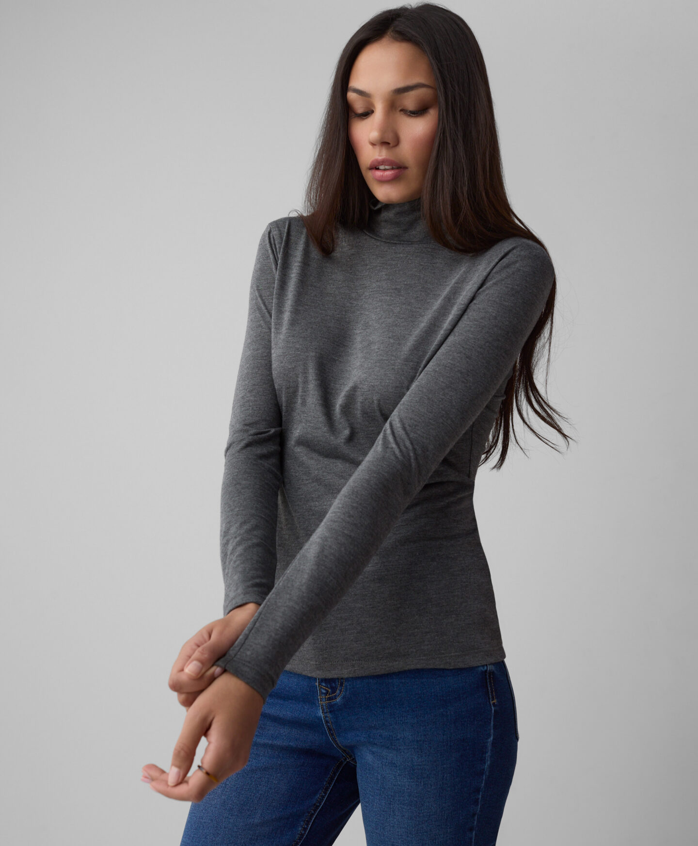 Das Damen-Langarmshirt mit Rollkragen eignet sich besonders für kühlere Tage.