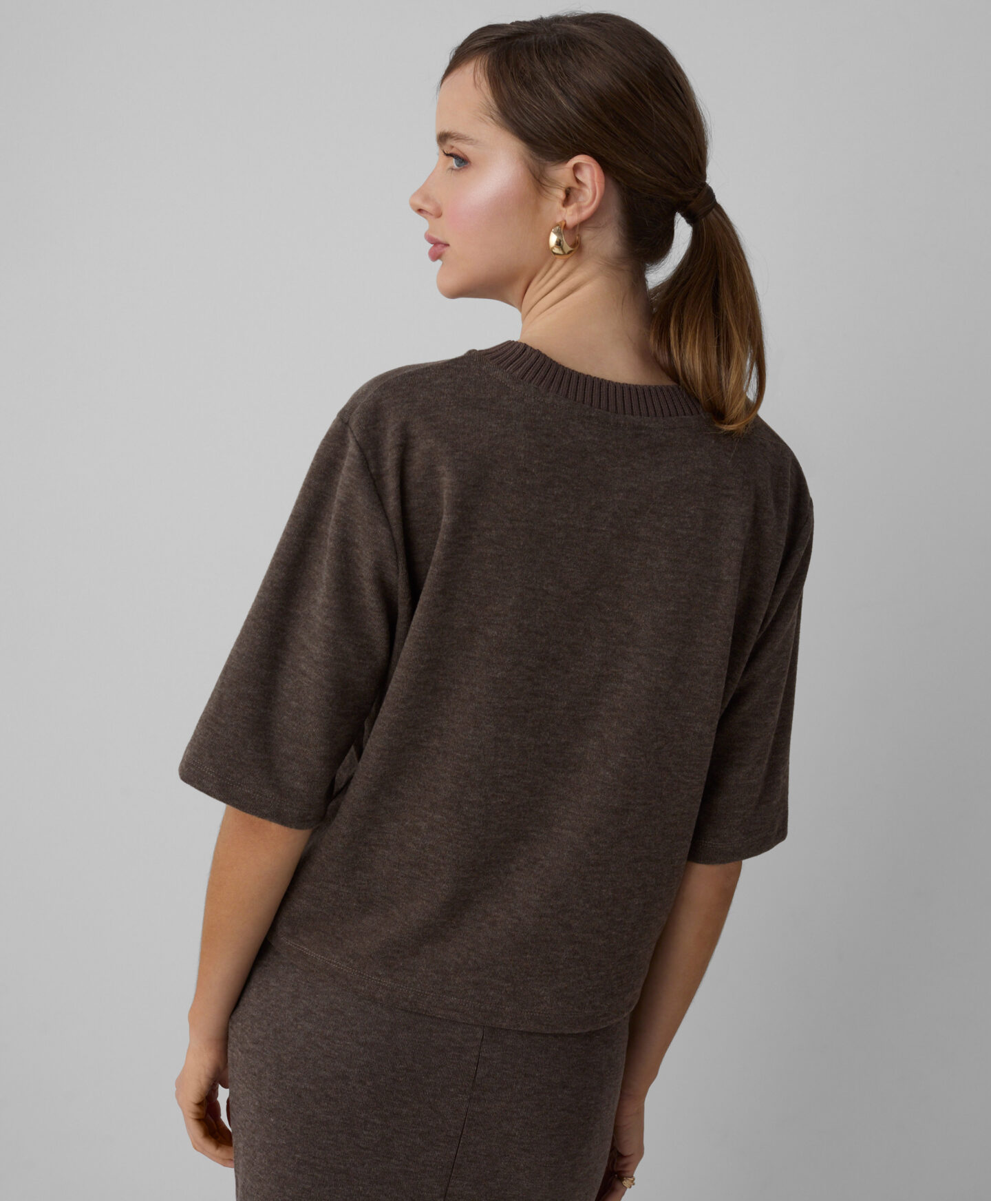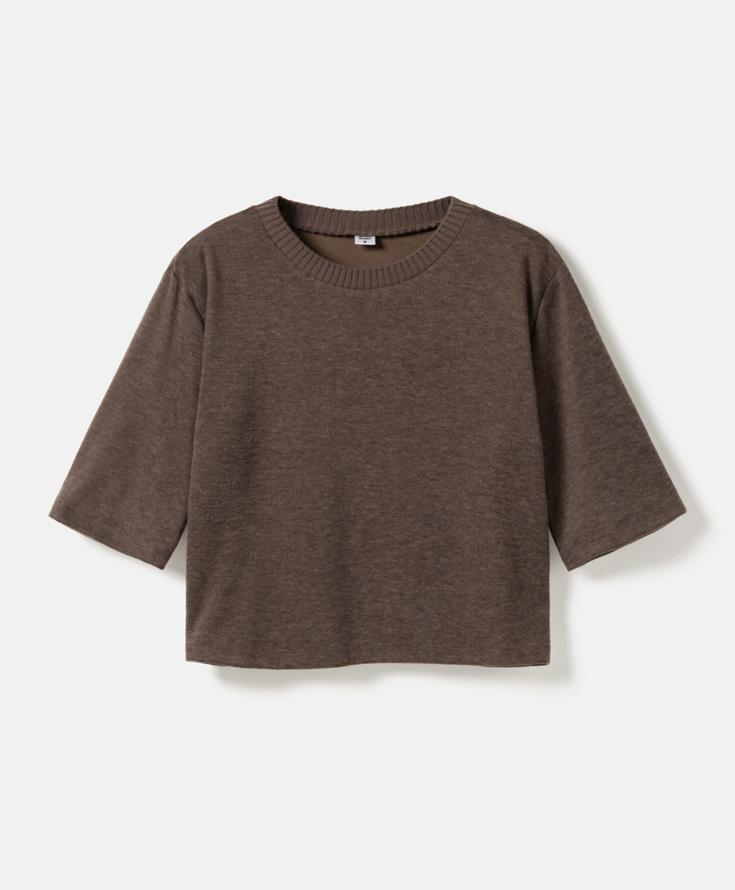 Das Damen-T-Shirt mit Sweatshirt-Optik lässt sich ideal kombinieren.