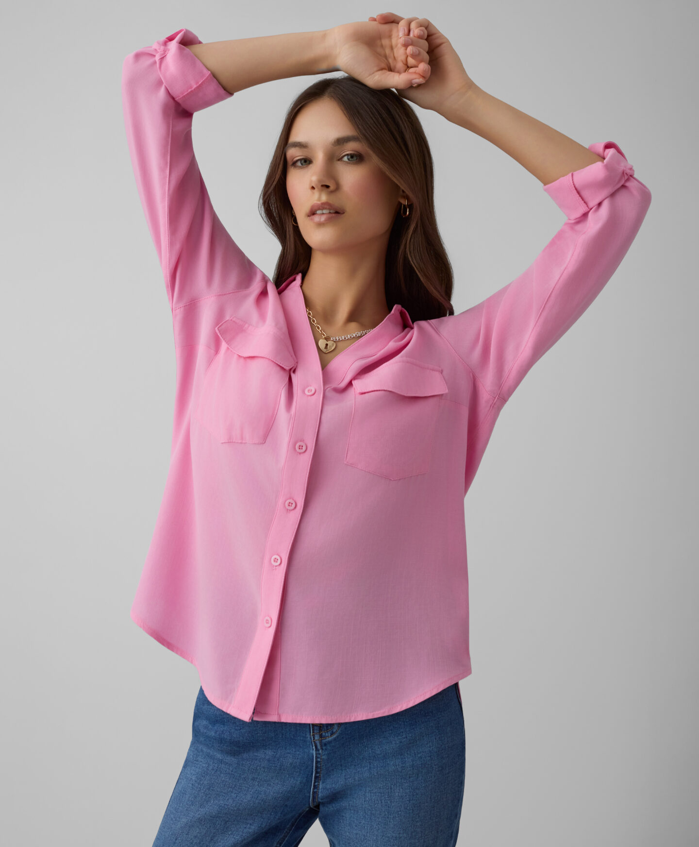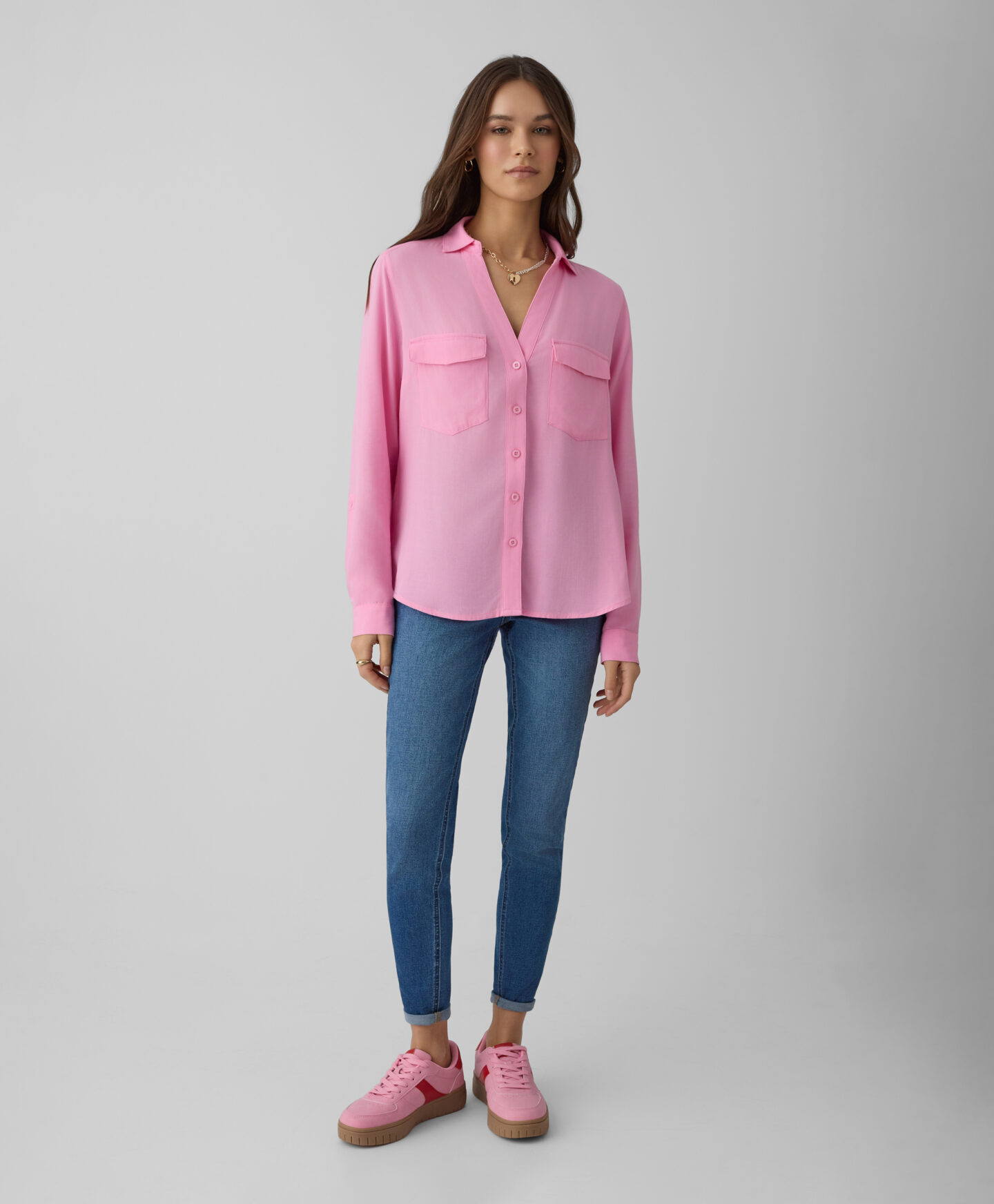 Die Damenbluse aus 100% Viskose mit Taschen eignet sich ideal für den Alltag.