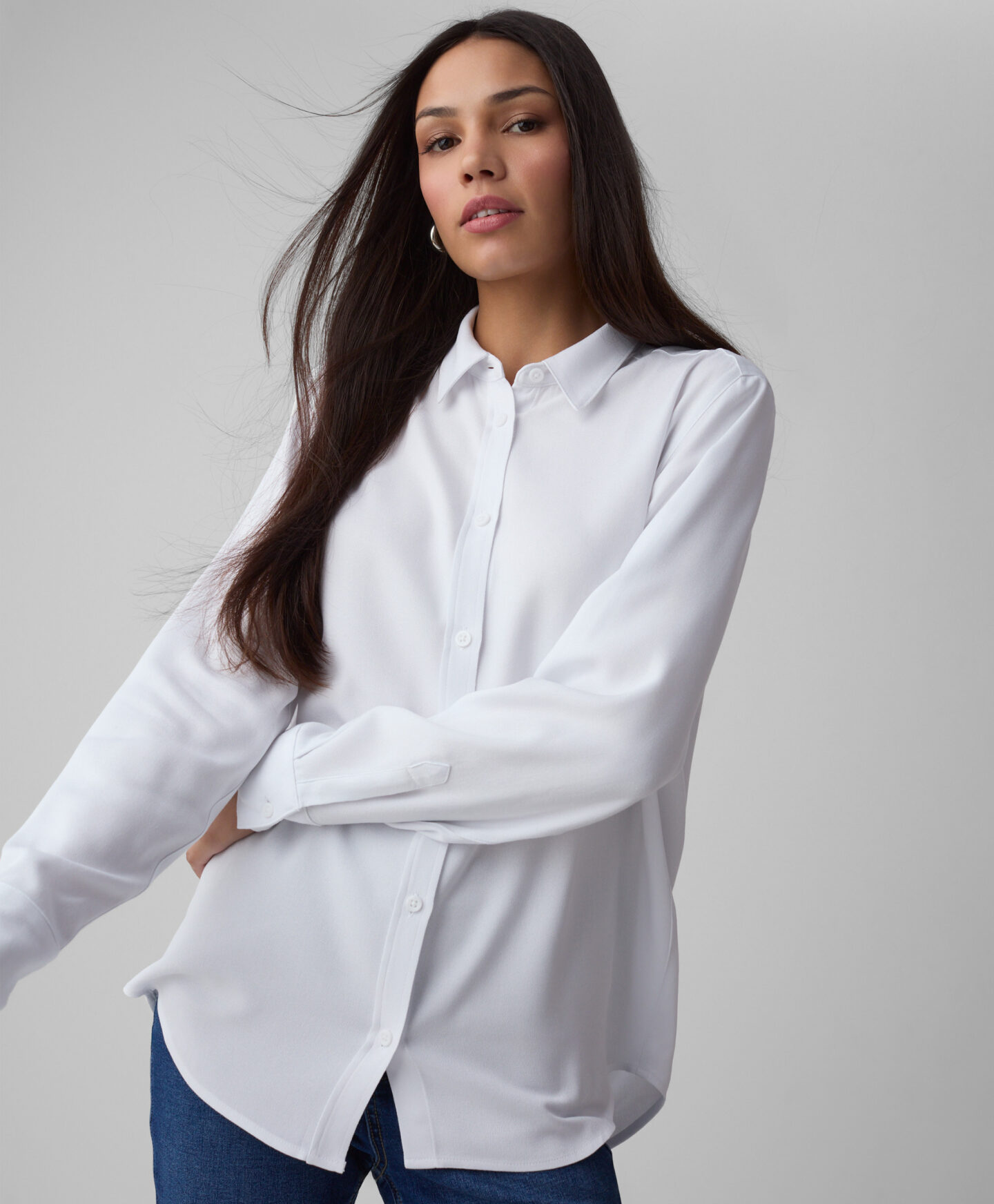 Die Damenbluse aus 100% Viskose überzeugt durch Komfort und zeitlosen Stil.