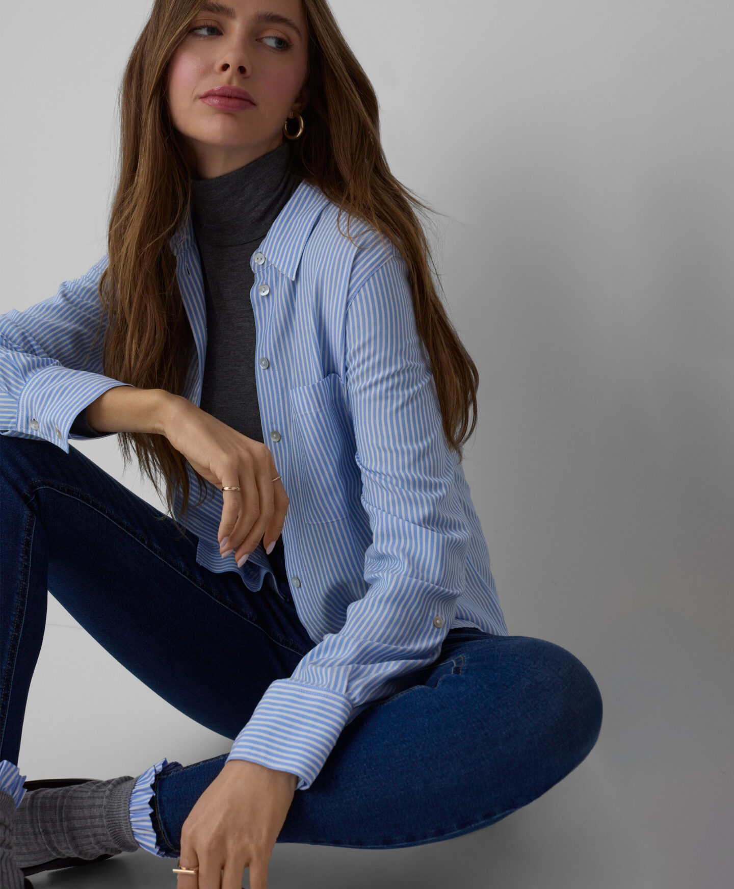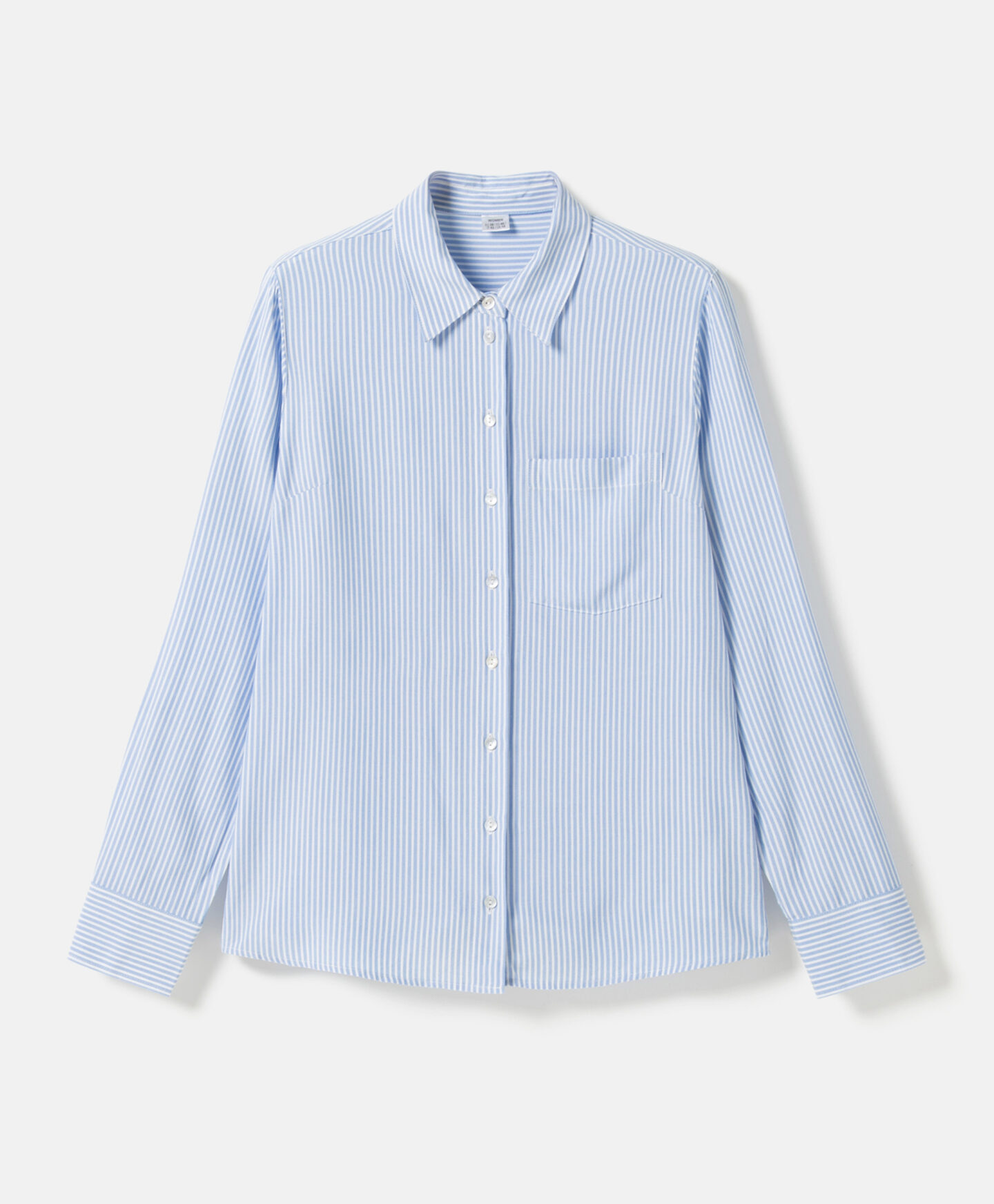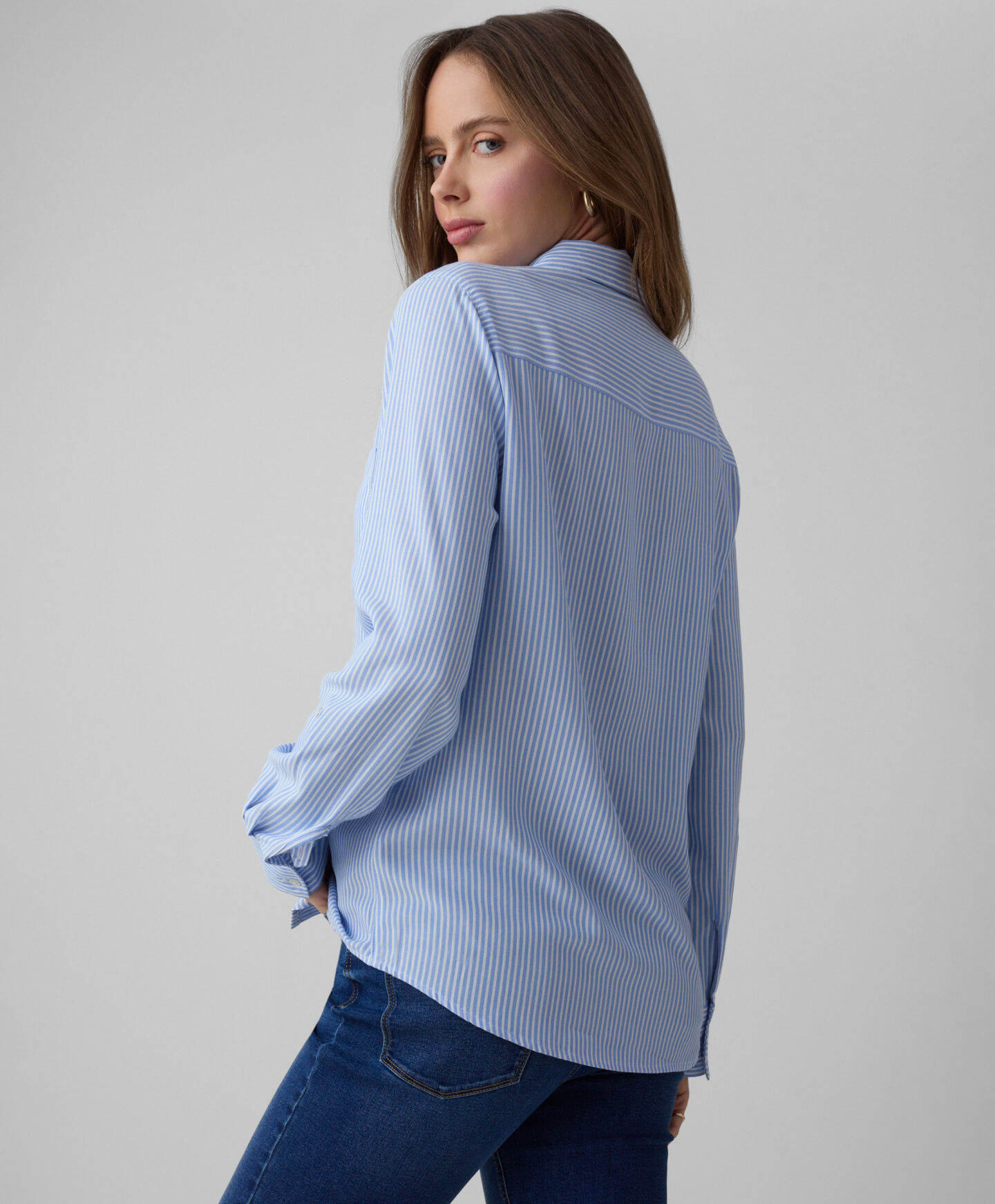 Die Damenbluse gestreift aus 100% Viskose mit Tasche ist eine vielseitige Ergänzung der Garderobe.