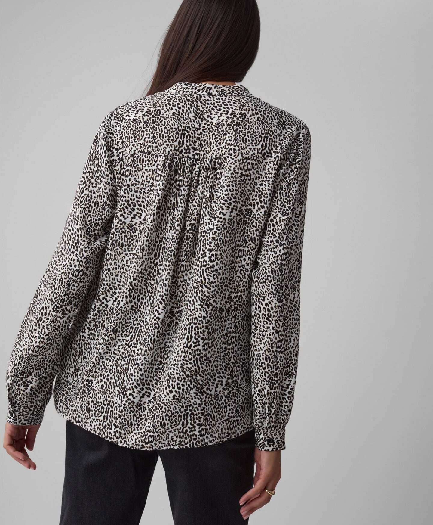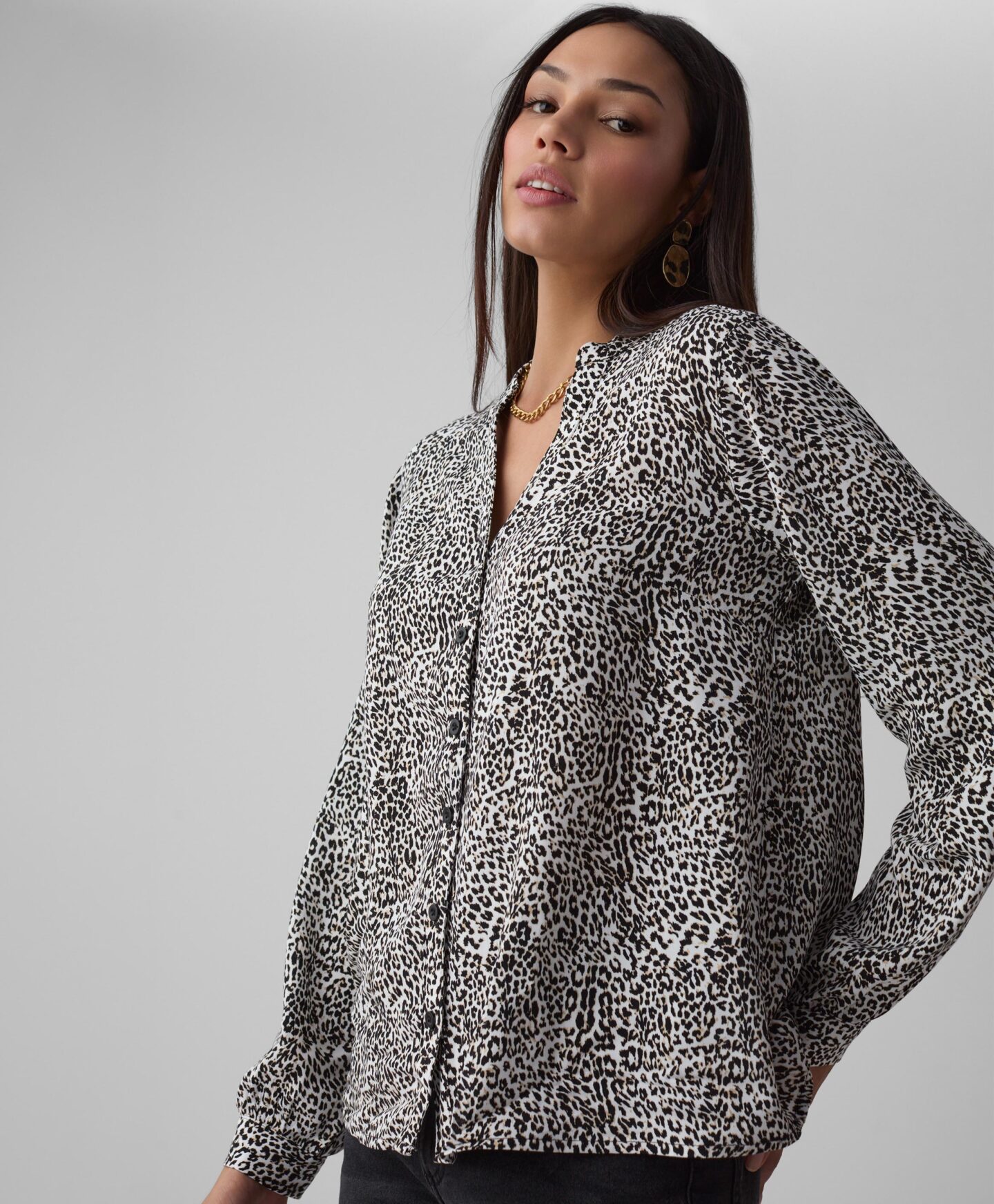 Die Damenbluse aus 100% Viskose mit Muster ist eine interessante Option für den Alltag.
