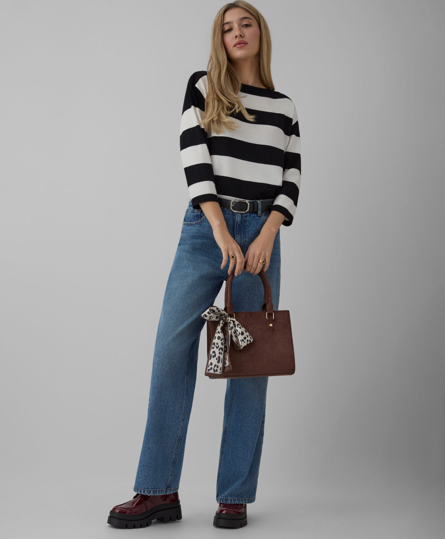 Die Damenhandtasche mit dekorativem Tuch verbindet klassischen Stil mit einem modernen Akzent.