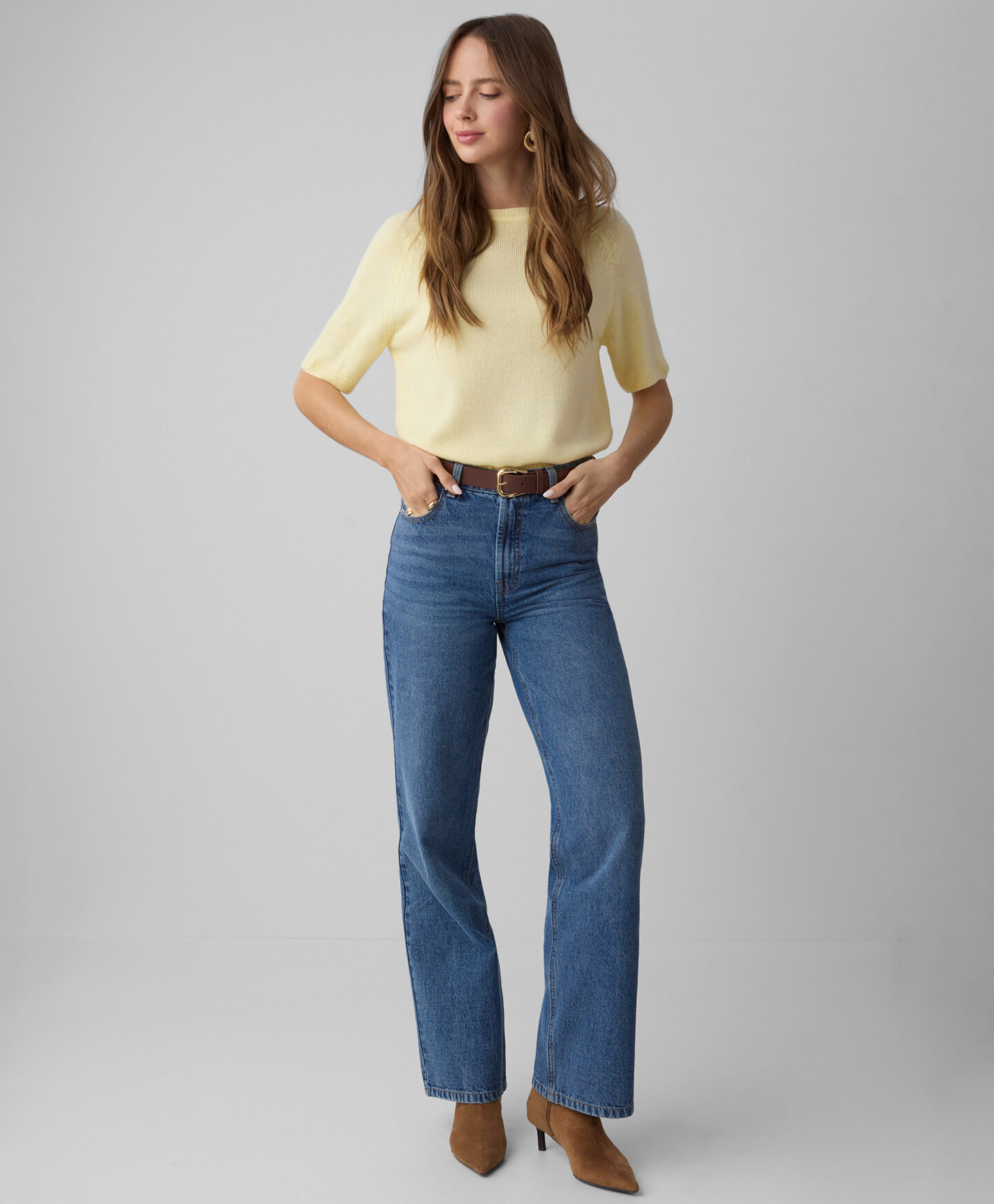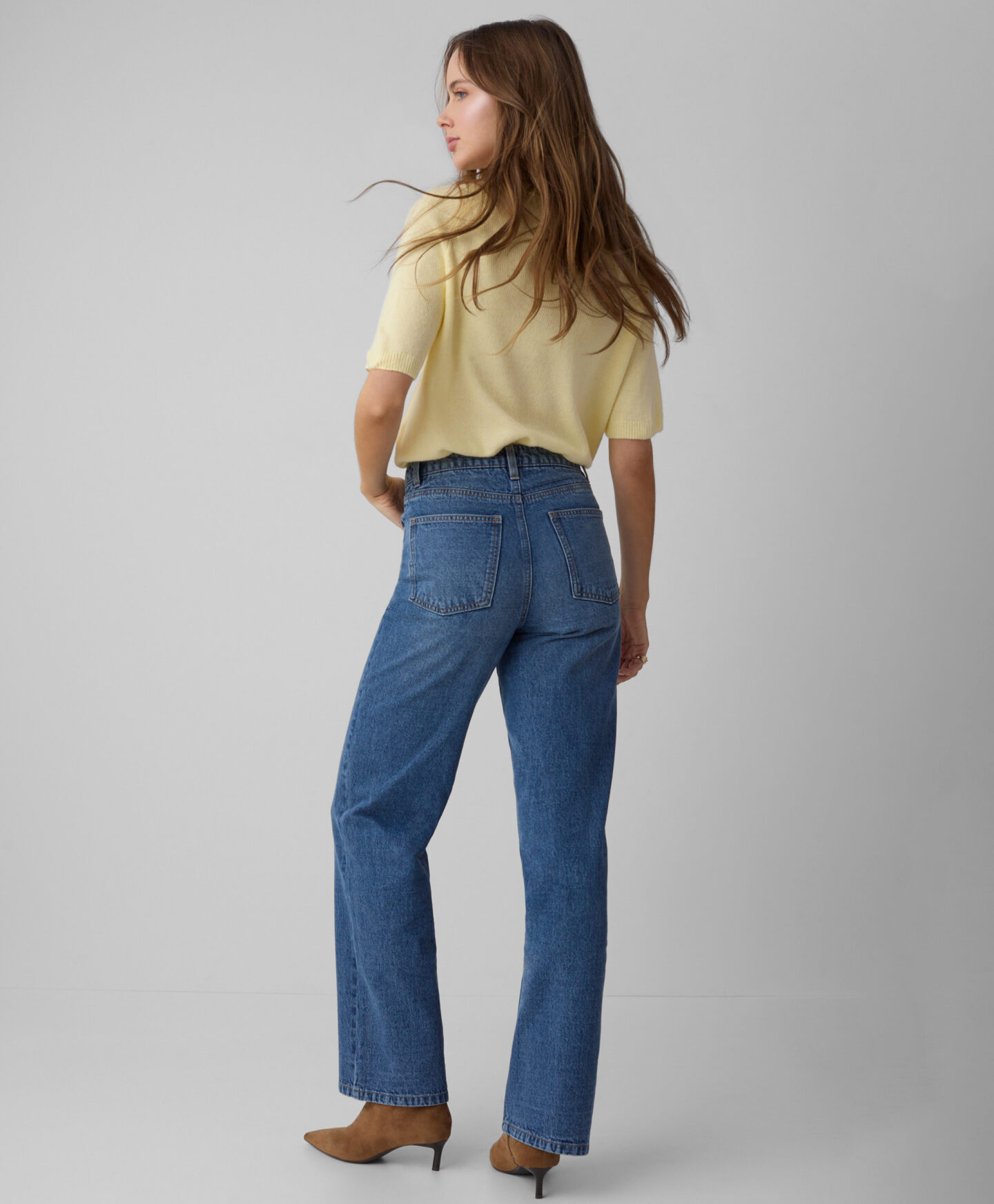 Die Damenjeans aus 100% Baumwolle mit weitem Bein sind ein fester Bestandteil der Garderobe.