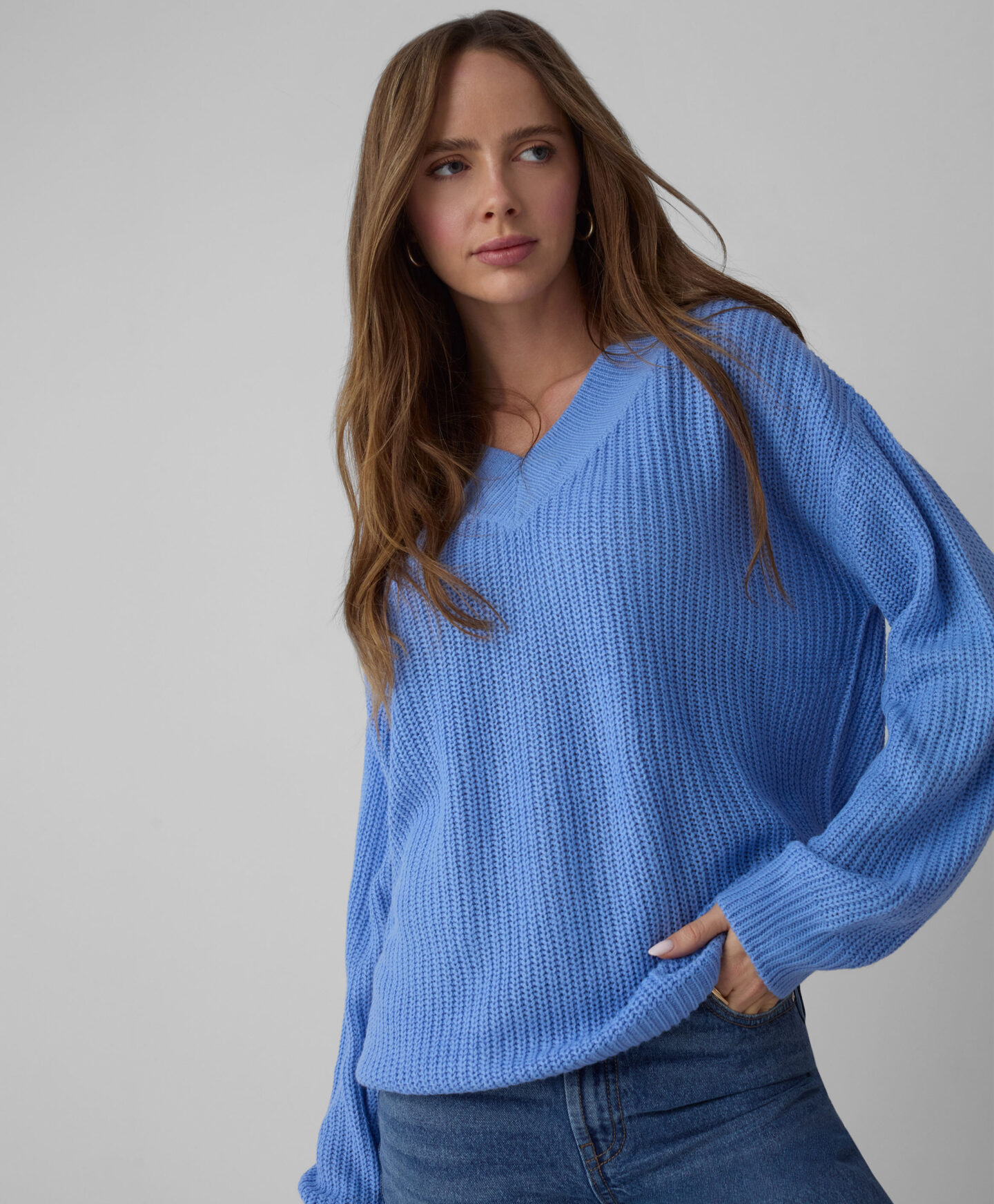 Der Damenpullover mit V-Ausschnitt ist ideal für den Alltag.
