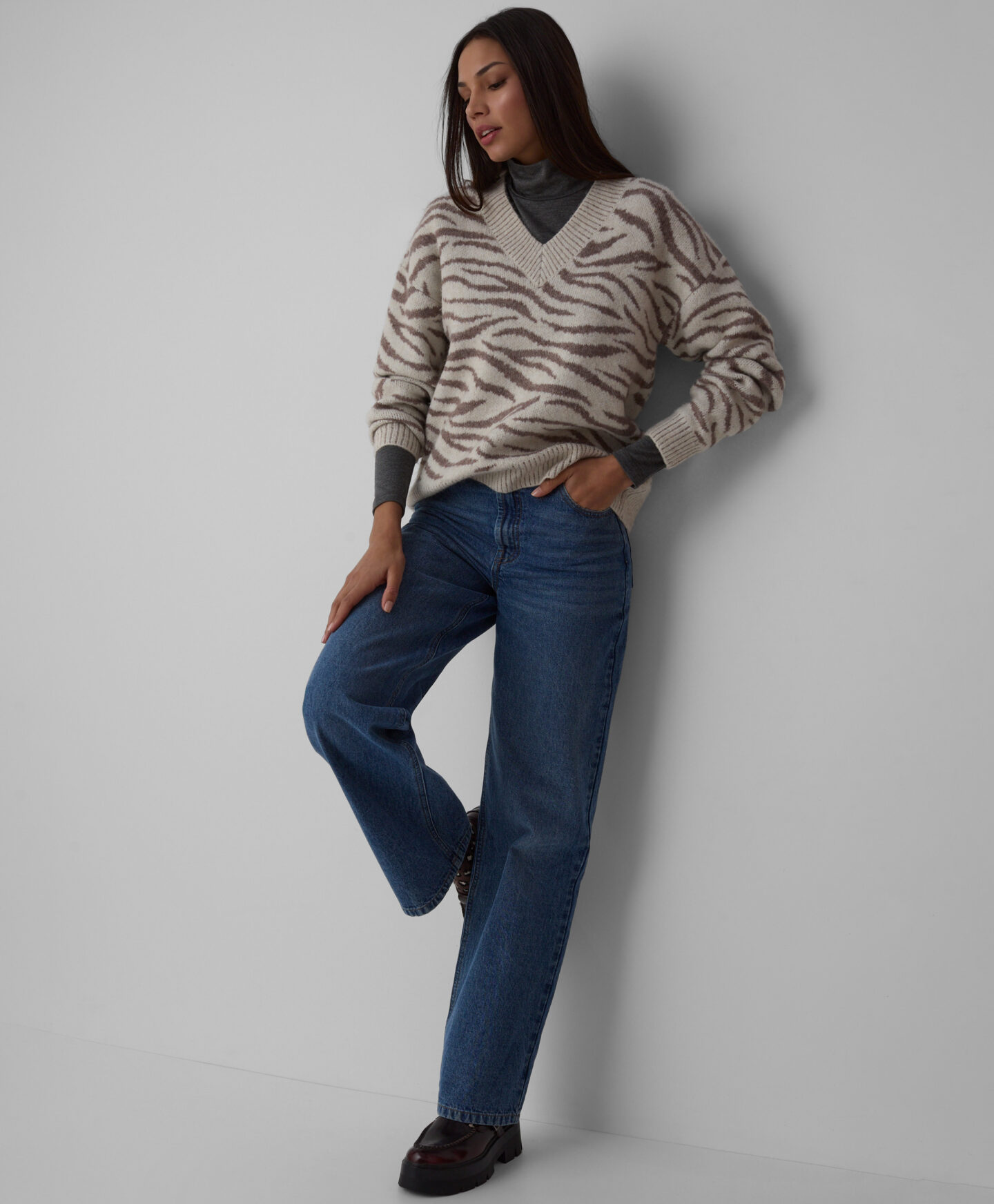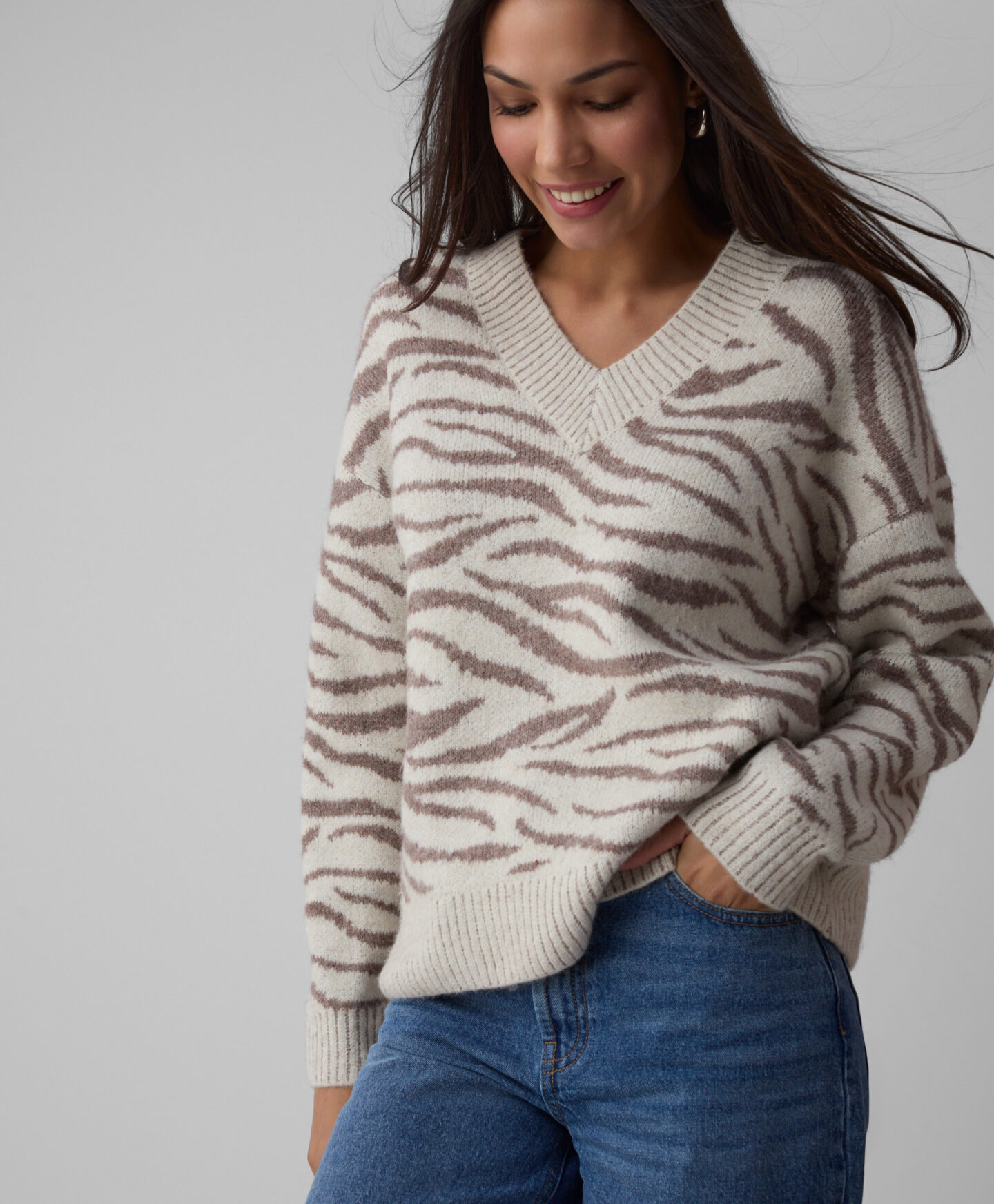 Der Damenpullover mit Zebr Muster ist die richtige Wahl für alle, die auffallen möchten.