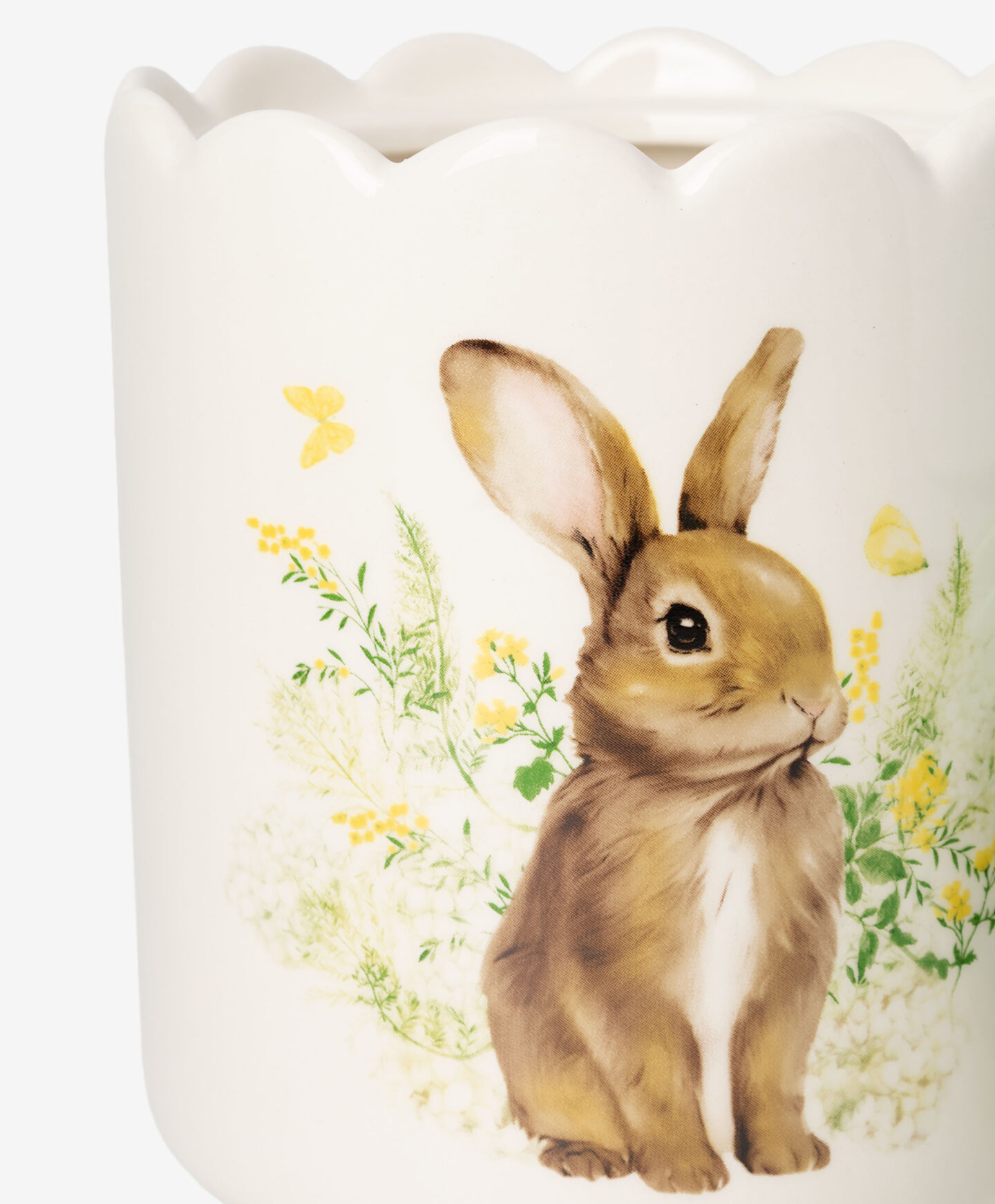Der Dolomitbehälter mit Hase verfügt über einen dicht schließenden Deckel.