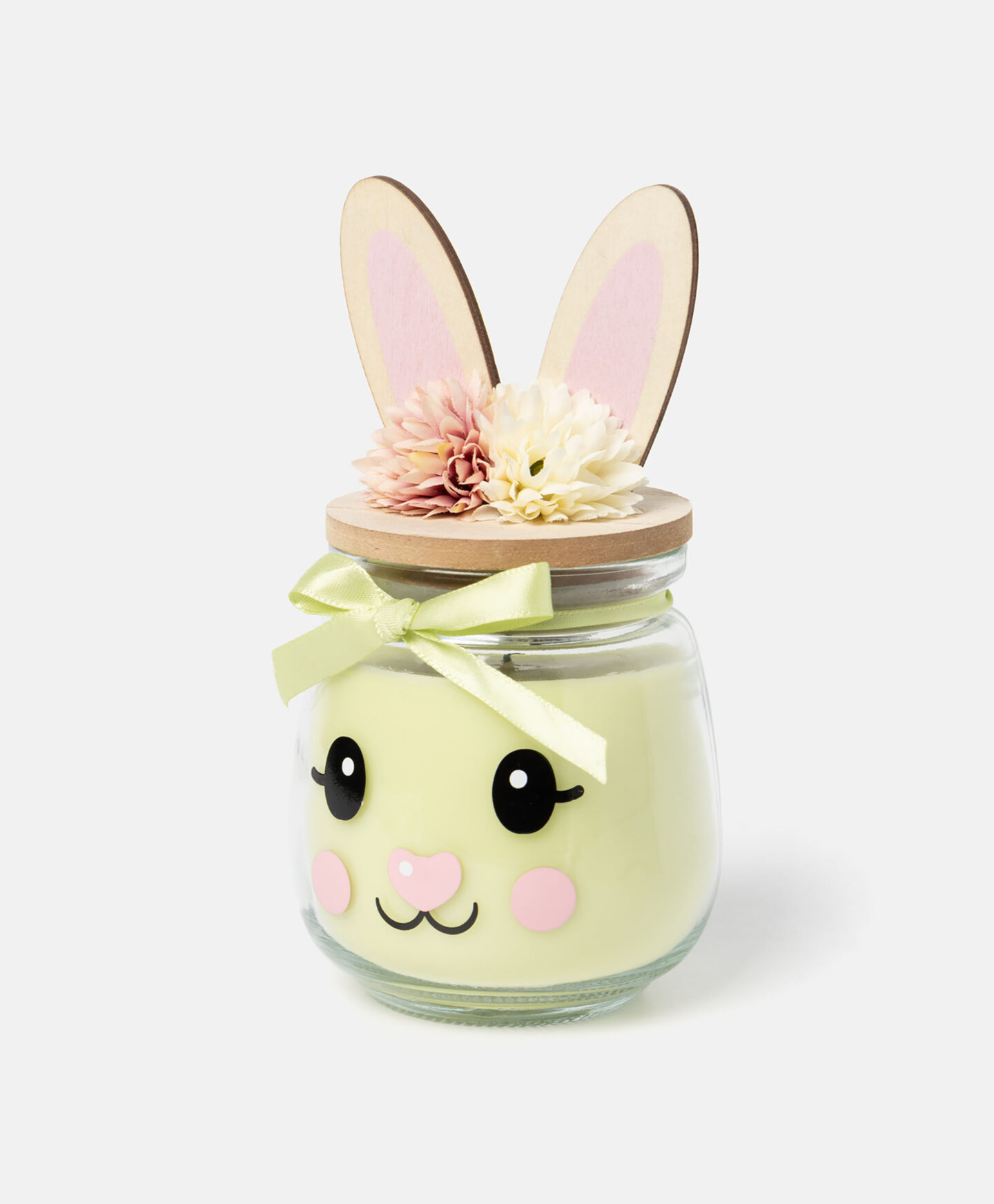 Die Duftkerze im Glas verfügt über einen dekorativen Deckel mit 3D-Ohren.