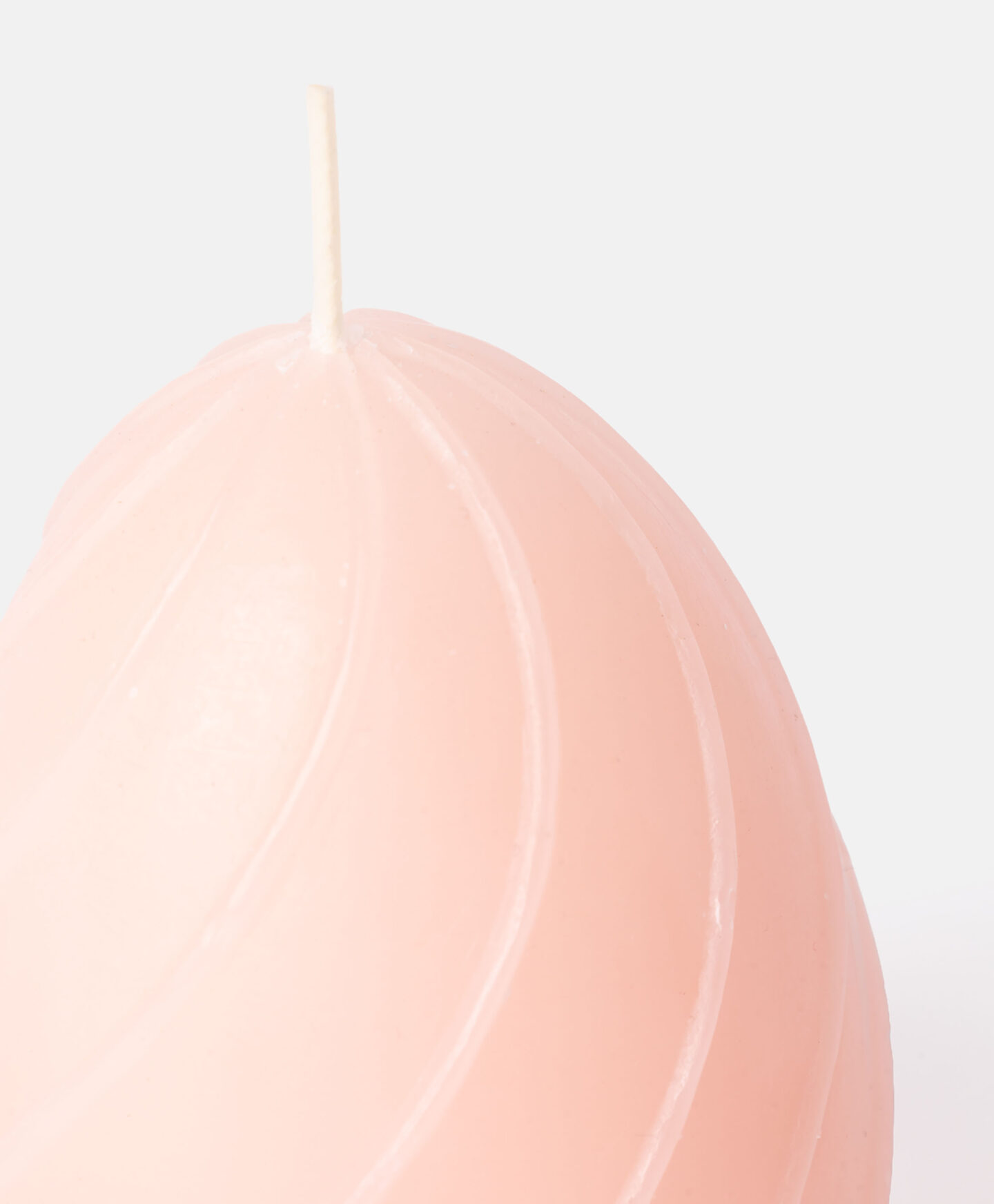Die eiförmige Kerze ergänzt die saisonale Dekoration.