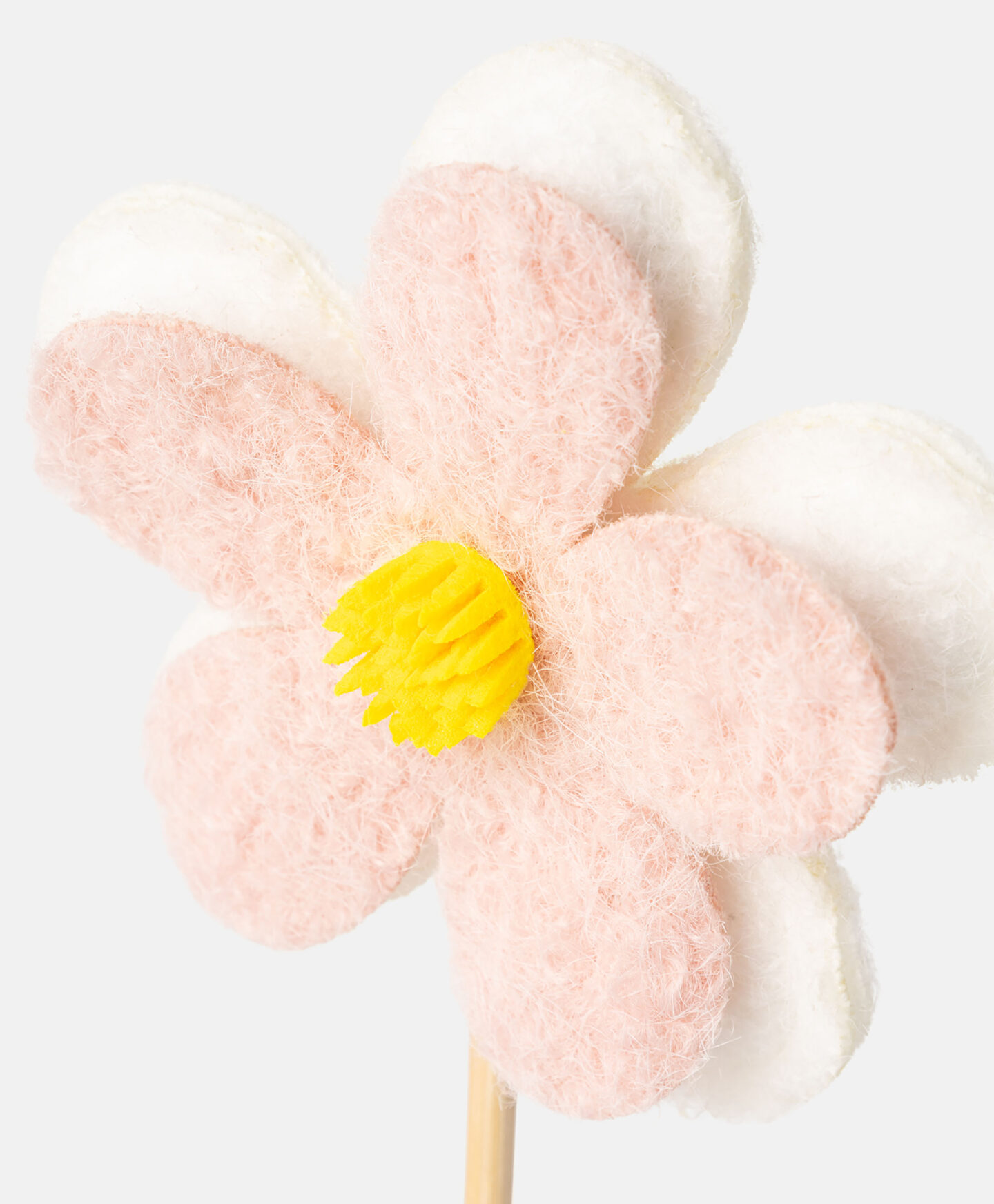 Die Filzblume ist eine langlebige Dekoration mit flexiblem Stiel.