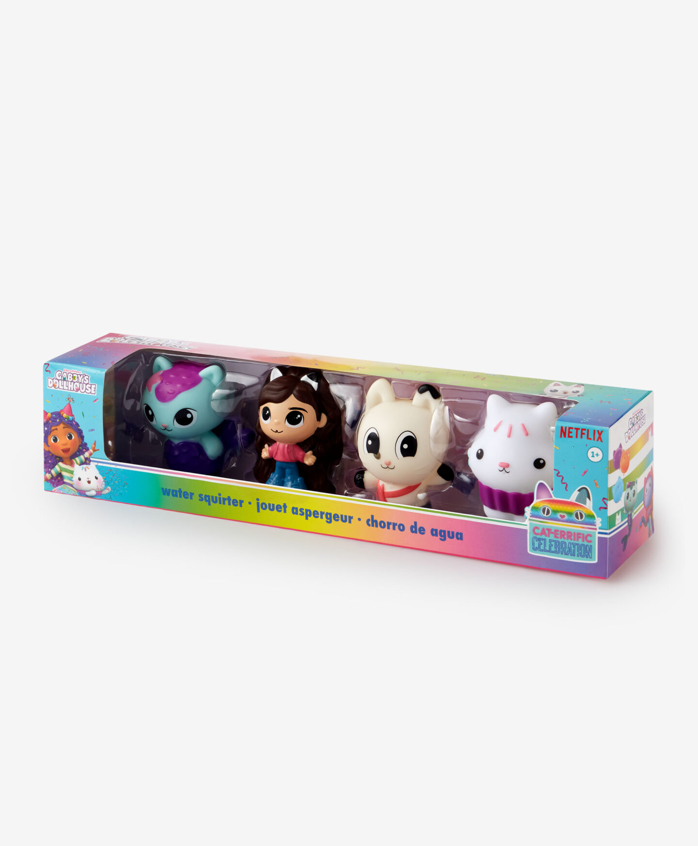 Das Gabby’s Dollhouse-Badeset zeigt Figuren aus der bekannten Serie, die auf dem Wasser schwimmen.