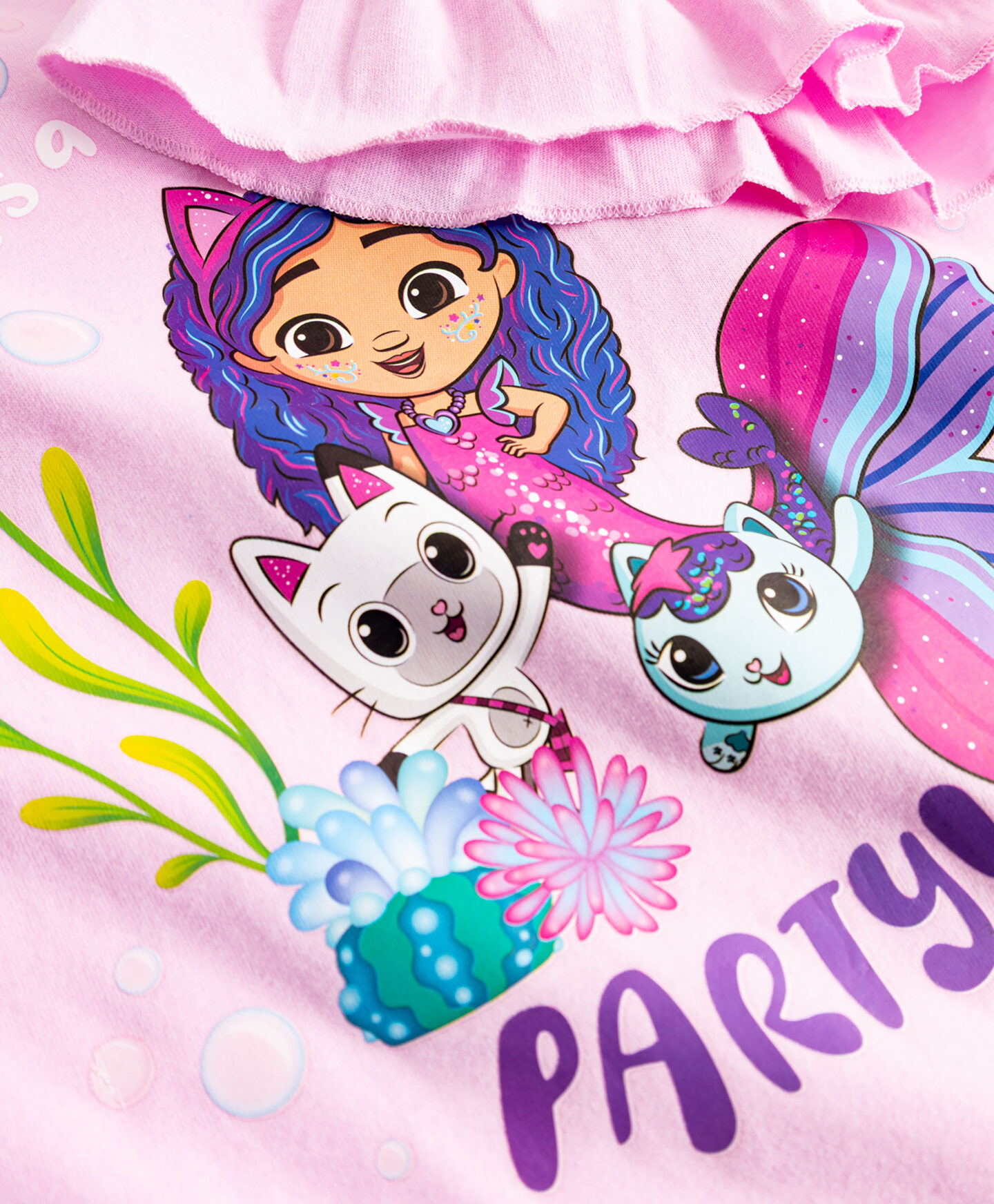 Das Gabby’s Dollhouse T-Shirt aus 100% Baumwolle überzeugt mit Rüschen an den Ärmeln.