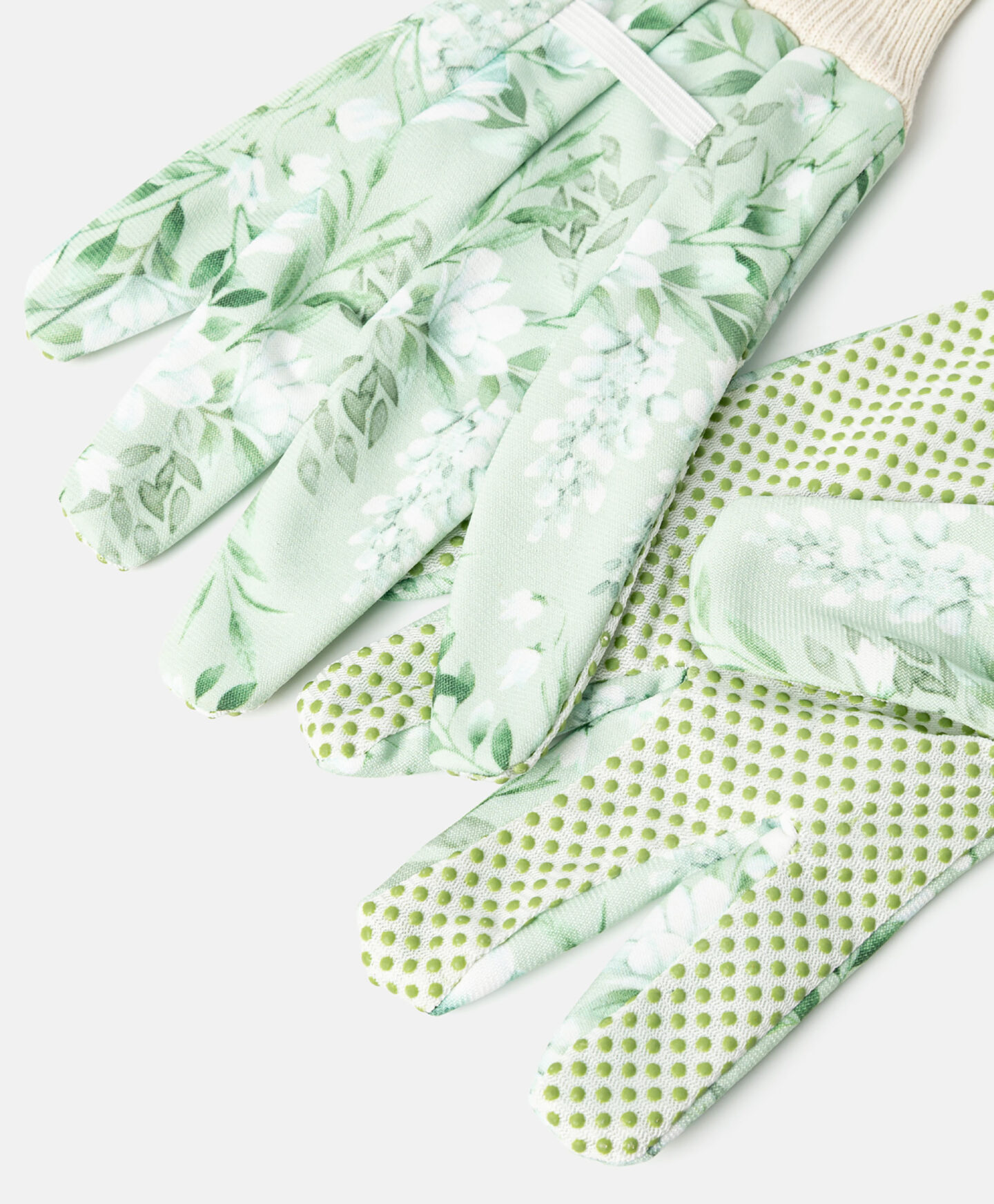 Die grünen Gartenhandschuhe sind ein unverzichtbares Zubehör für die Gartenarbeit.