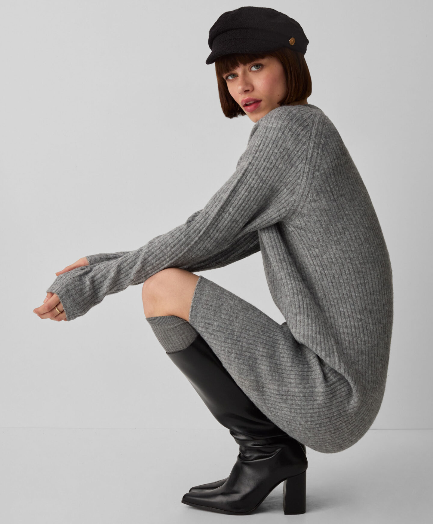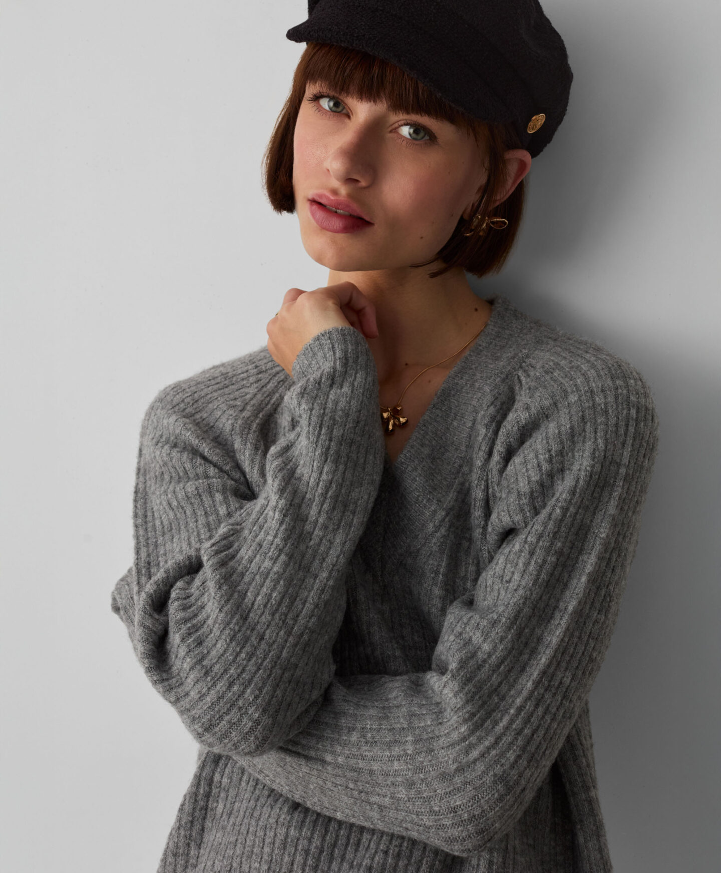 Gestricktes Kleid für Damen mit V-Ausschnitt – Wird zur Heldin vieler Herbststyles. Der längere Schnitt, die zurückhaltende Farbe und der feminine Ausschnitt machen dieses Kleid sowohl für das Büro als auch für die Freizeit geeignet. Es lässt sich perfekt mit Leggings, Jeggings oder dickeren Strumpfhosen kombinieren und in Verbindung mit kniehohen Stiefeln oder Ankle Boots entsteht eine modische und vielseitige Kombination.