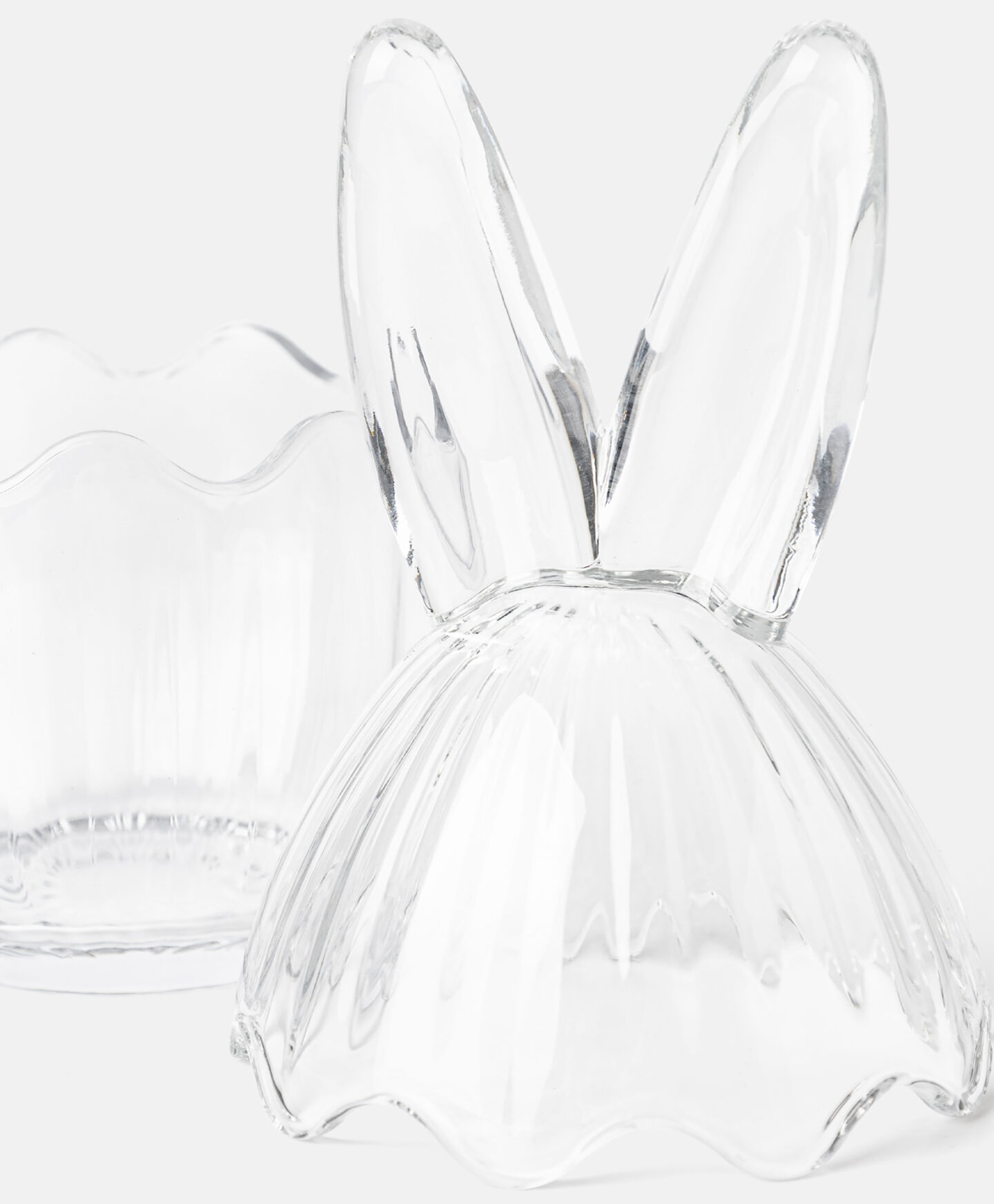 Die Glas-Bonboniere mit Deckel und Ohren ist ein elegantes Tischaccessoire.