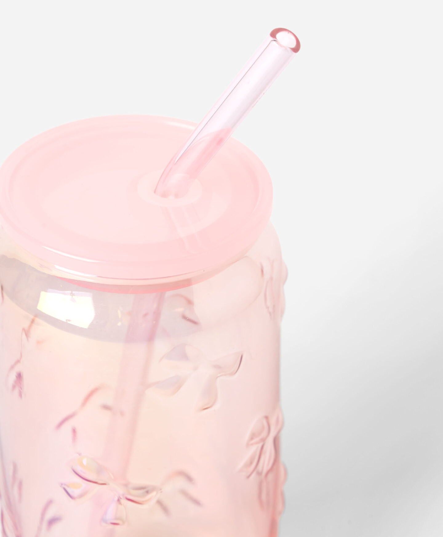 Das Glas mit Strohhalm und Schleifenmotiv eignet sich zum stilvollen Servieren von Getränken.