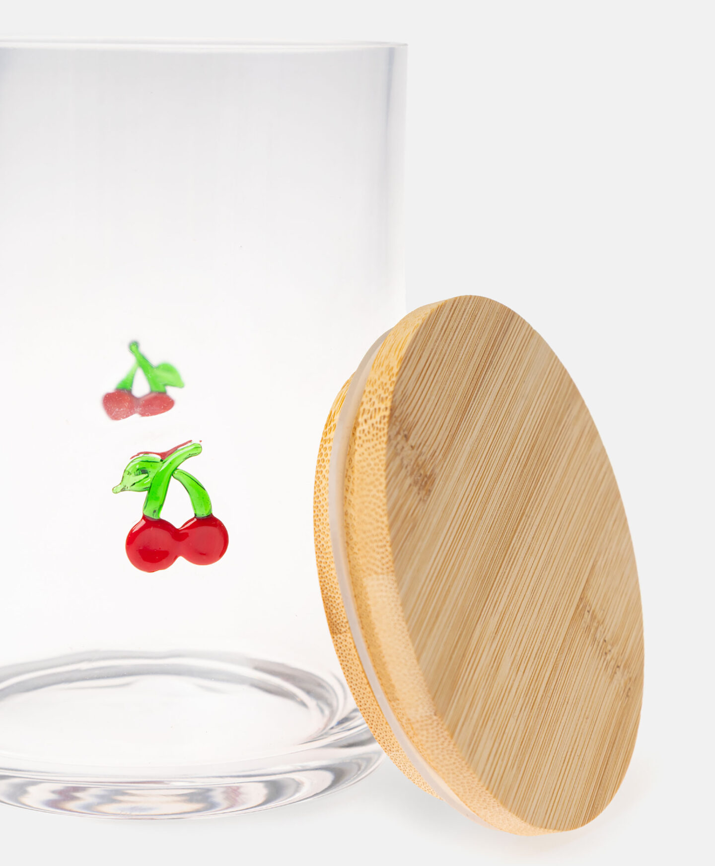 Der Glasbehälter mit Deckel und Kirschmuster ist dekorativ und zugleich sehr praktisch.