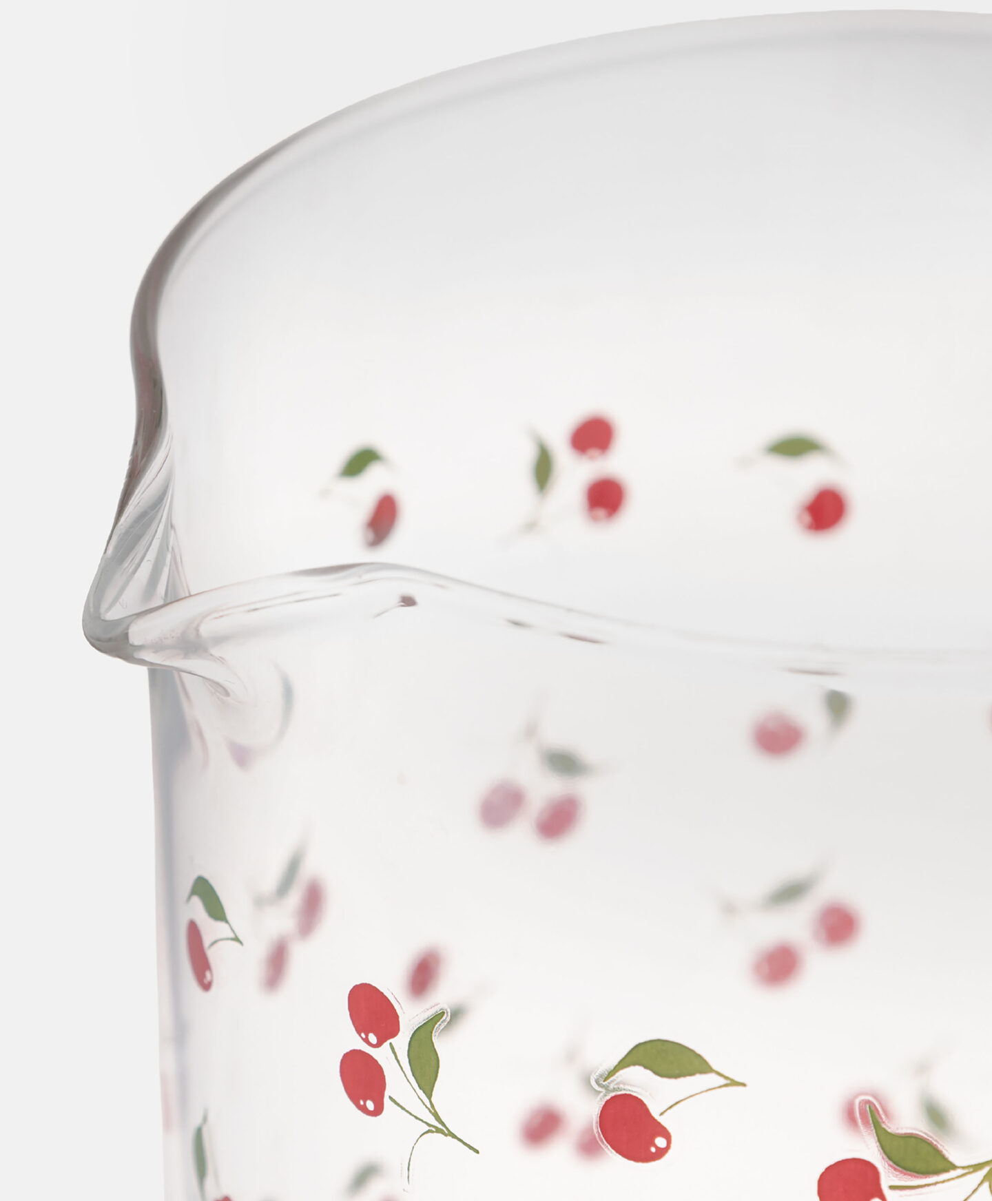 Der Glaskrug mit Kirschmuster bringt sommerliches Flair in die Küche.