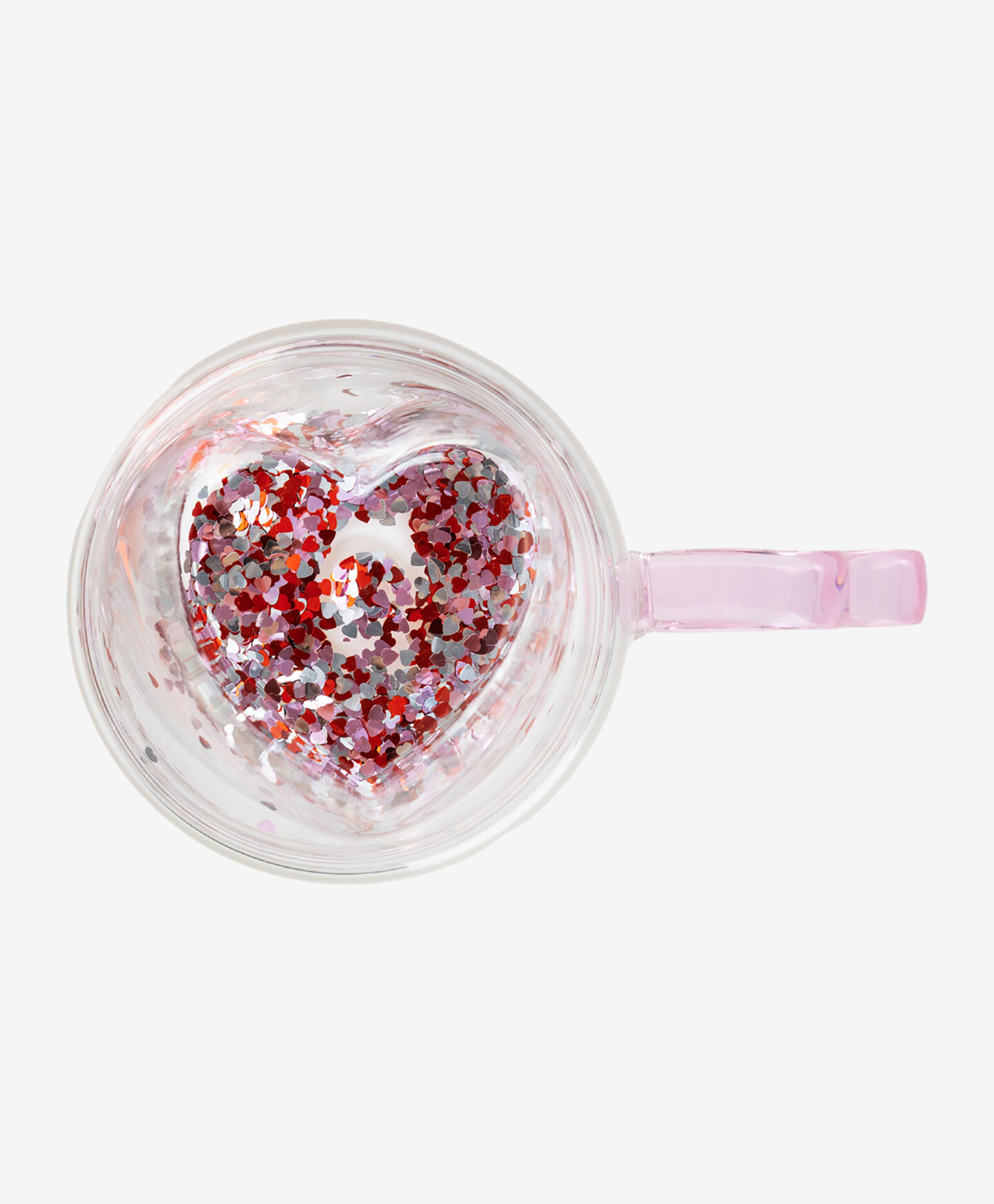 Der GlasTasse aus Borosilikatglas mit herzförmigem Henkel ist doppelwandig.
