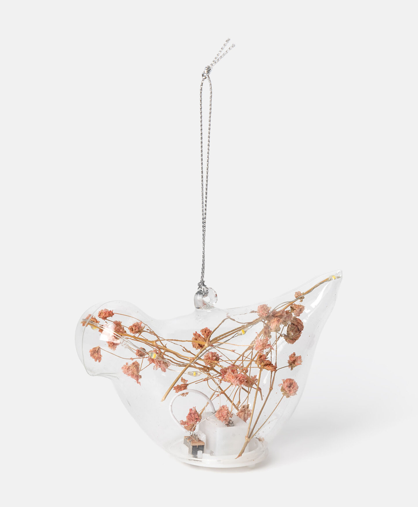 Der Glasvogel LED-Anhänger mit Schleierkraut sorgt für stimmungsvolle Lichteffekte.