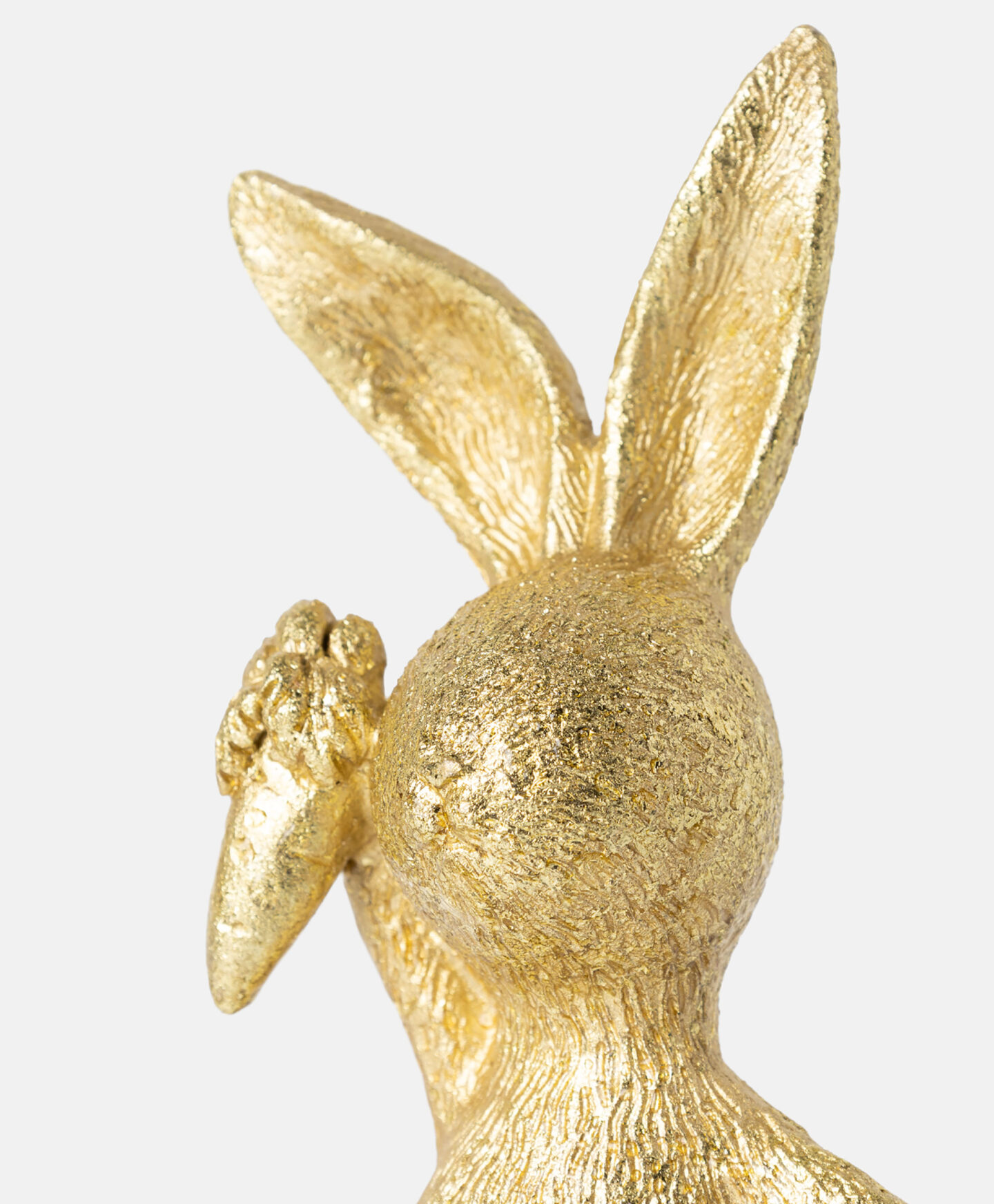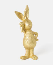 Der goldene Polyresin-Hase mit Karotte ist eine elegante Dekorationsfigur.
