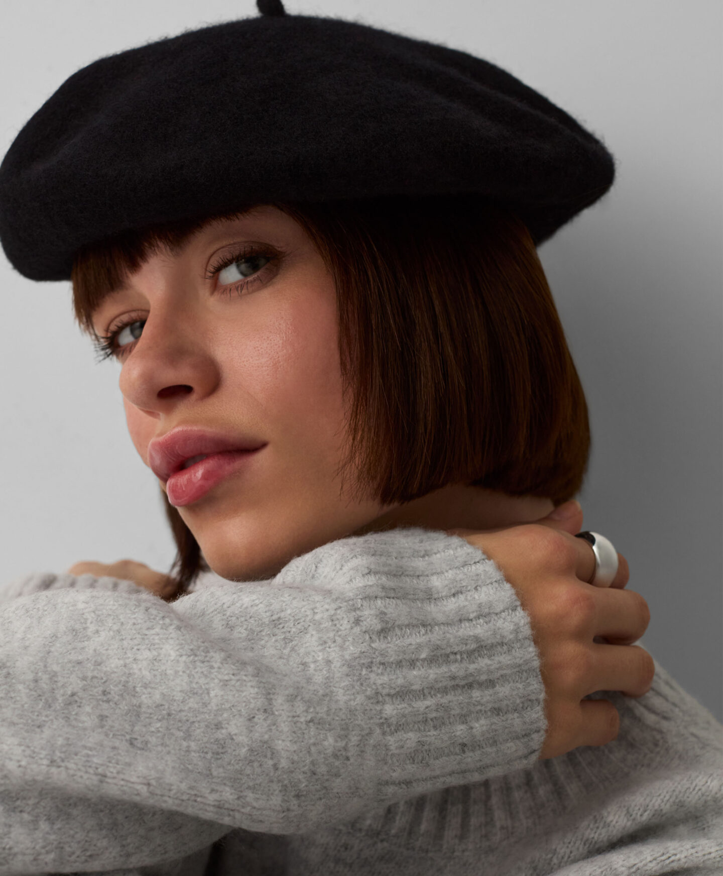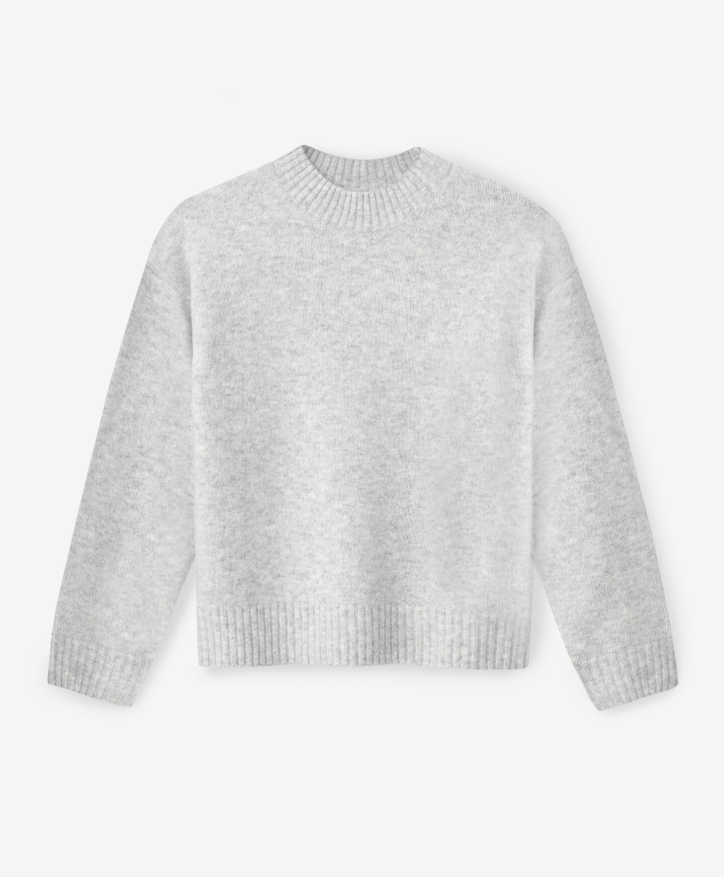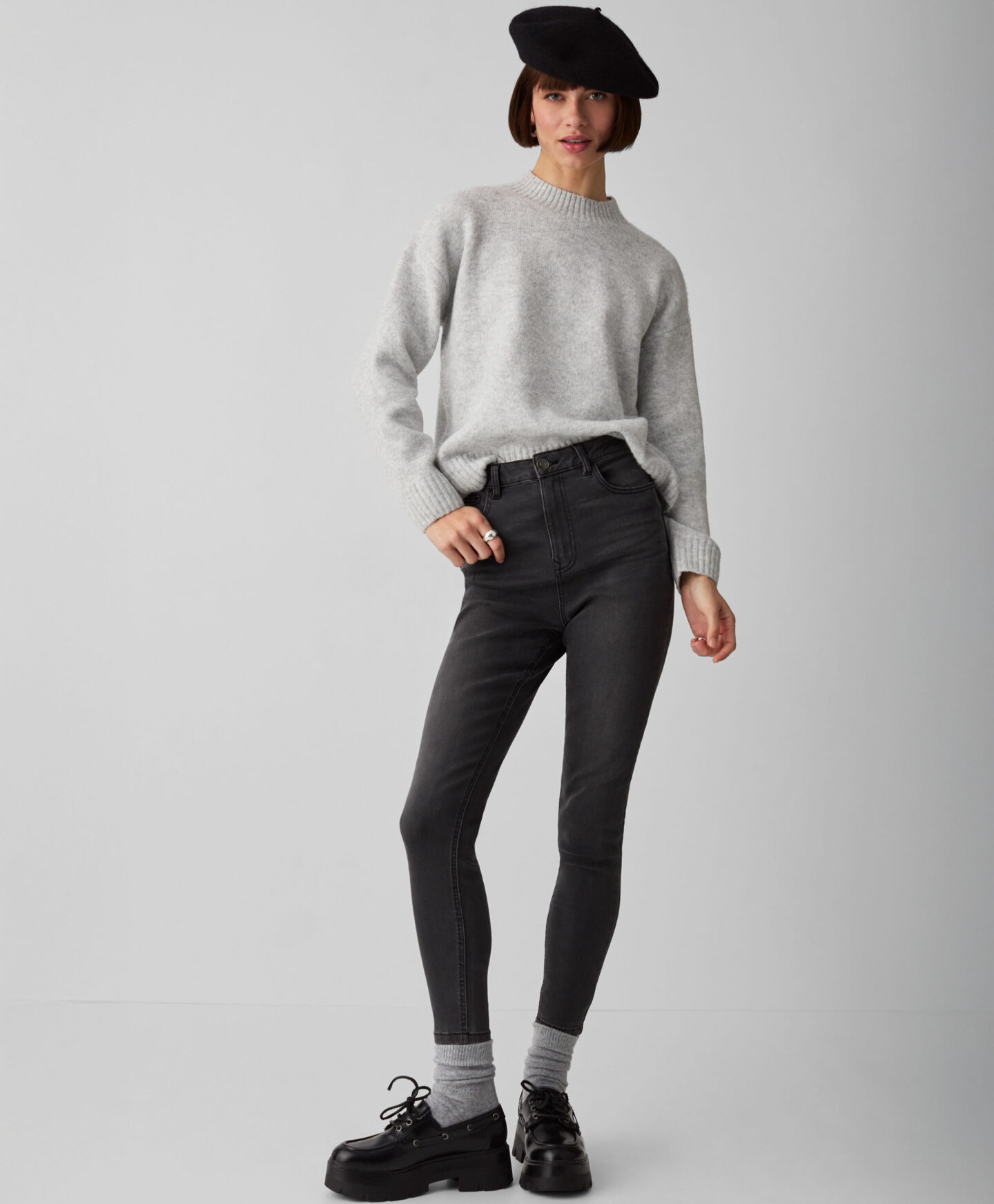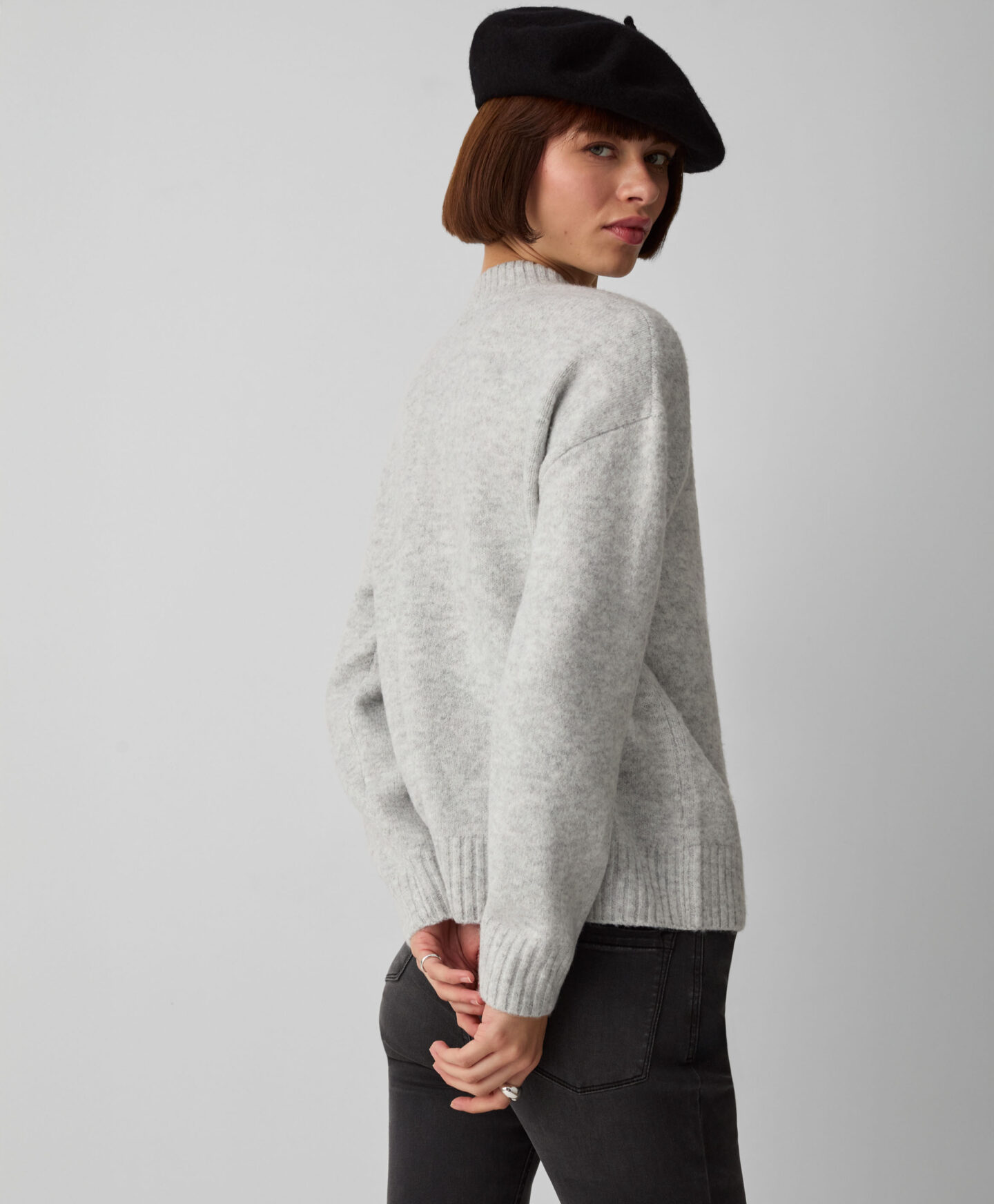 Weiches graues Sweatshirt für Damen mit Stehkragen – Ideal, um Herbst- und Winterkälte zu trotzen. Es ist dick, warm und stilvoll. Perfekt fürs Büro, Treffen mit Freundinnen oder für den Alltag in der Stadt. Sieht besonders gut aus zu Jeans, eleganten Hosen oder in einem sportlicheren Look. Erhältlich in zwei Farbvariants.