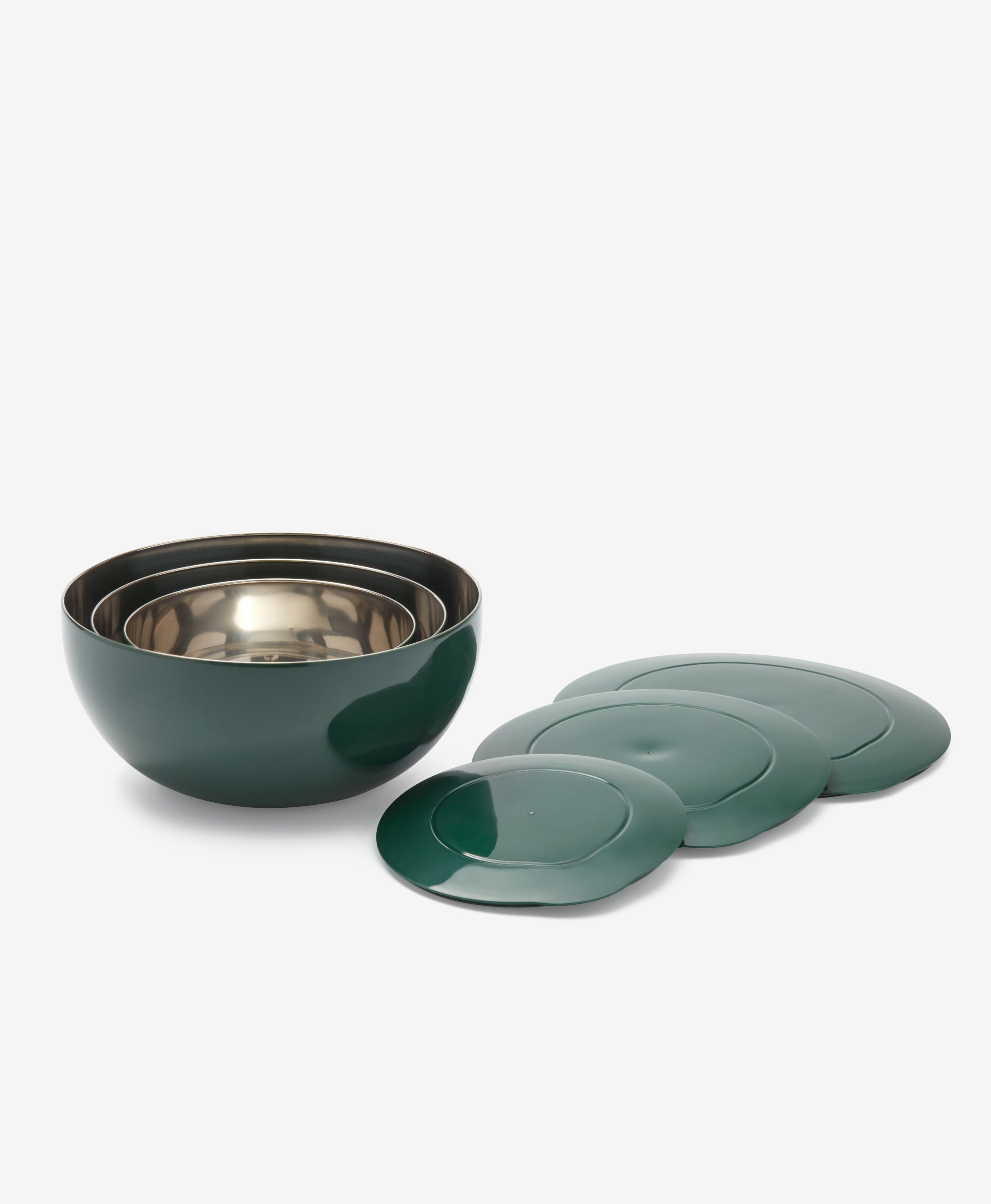 Grüne Salatschüsseln aus Metall, 3er-Set
