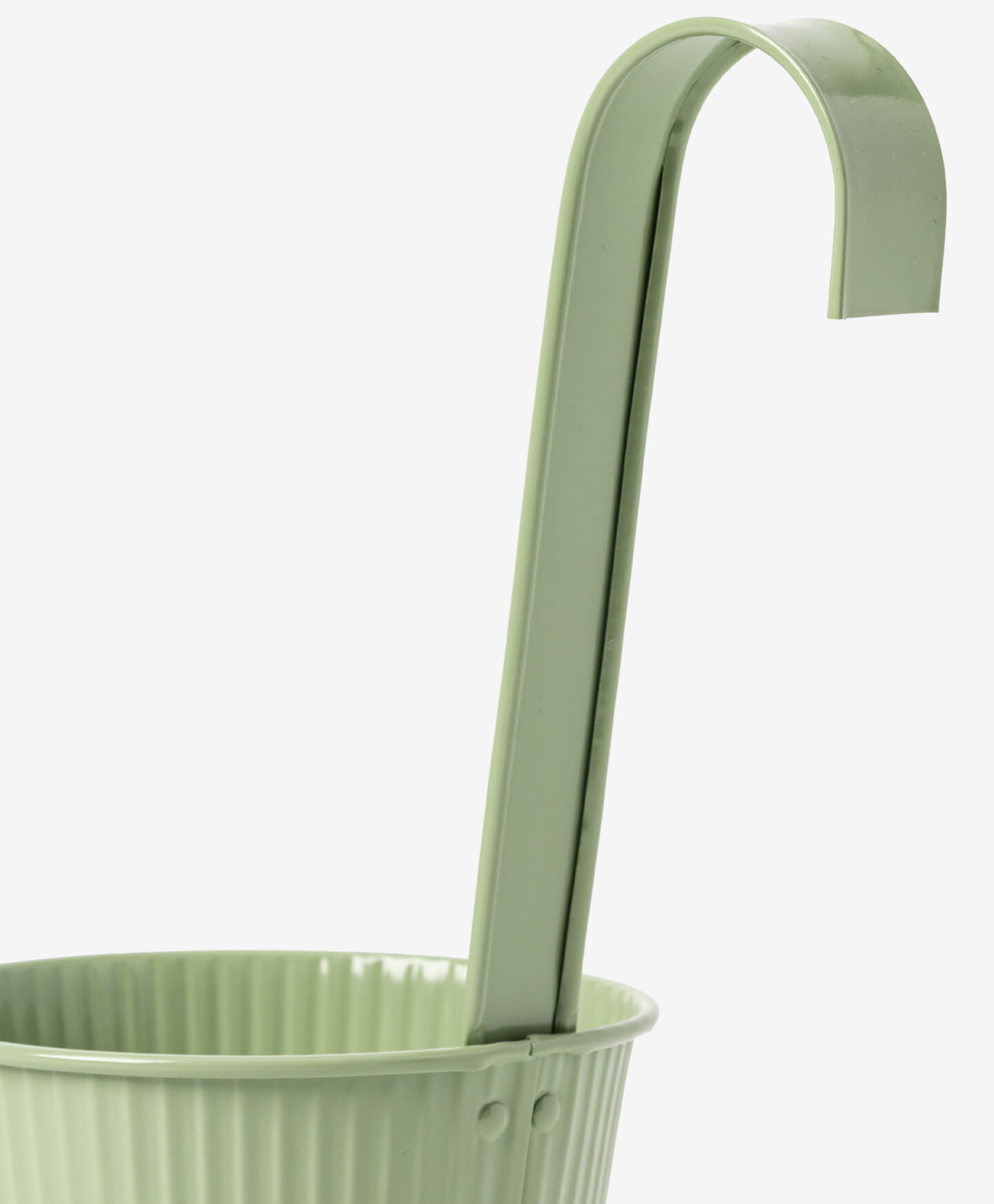 Die grüne hängende Pflanzkübel-Abdeckung mit gerippter Oberfläche fällt durch ihr frühlingshaftes Design auf.
