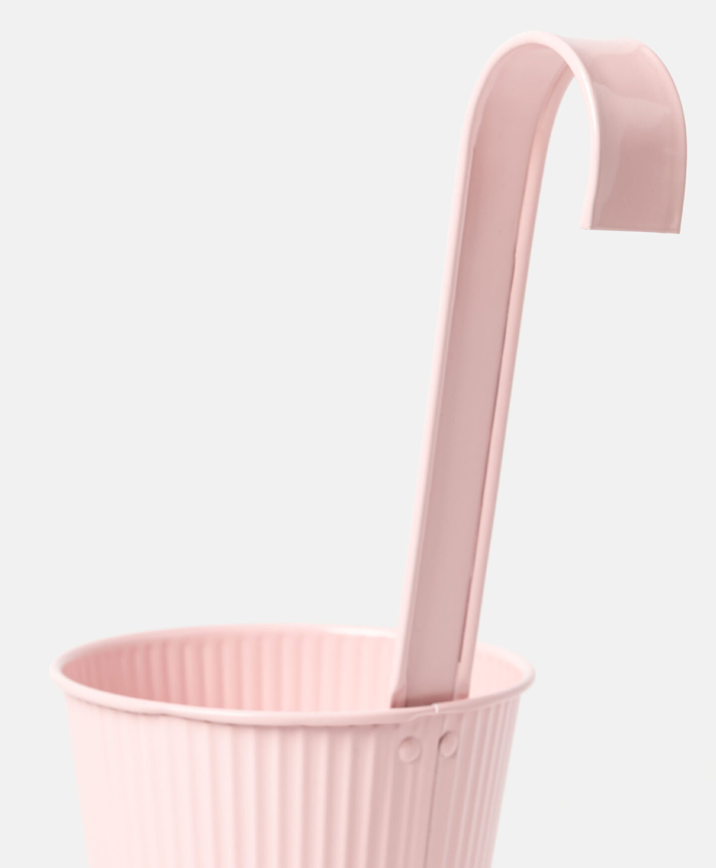 Die pinke hängende Pflanzkübel-Abdeckung mit gerippter Oberfläche fällt durch ihr frühlingshaftes Design auf.