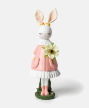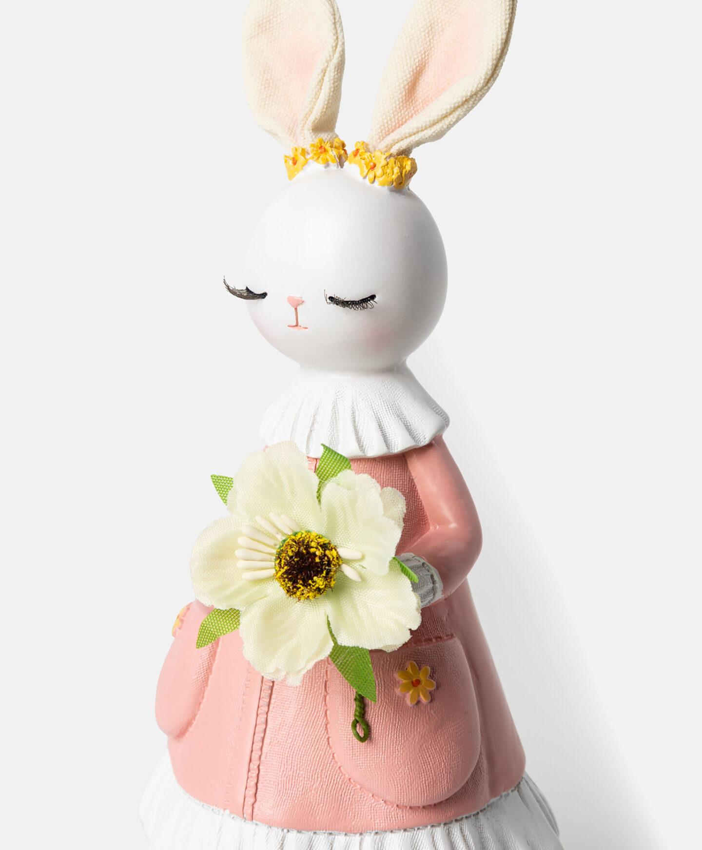 Die Hasendame im Kleid ist eine dekorative Figur mit detailreicher Gestaltung.