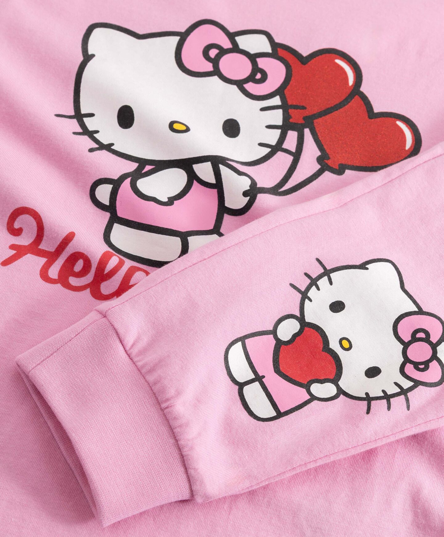 Der Hello-Kitty-Pyjama aus 100% Baumwolle besteht aus einem langärmligen Oberteil und einer Hose.