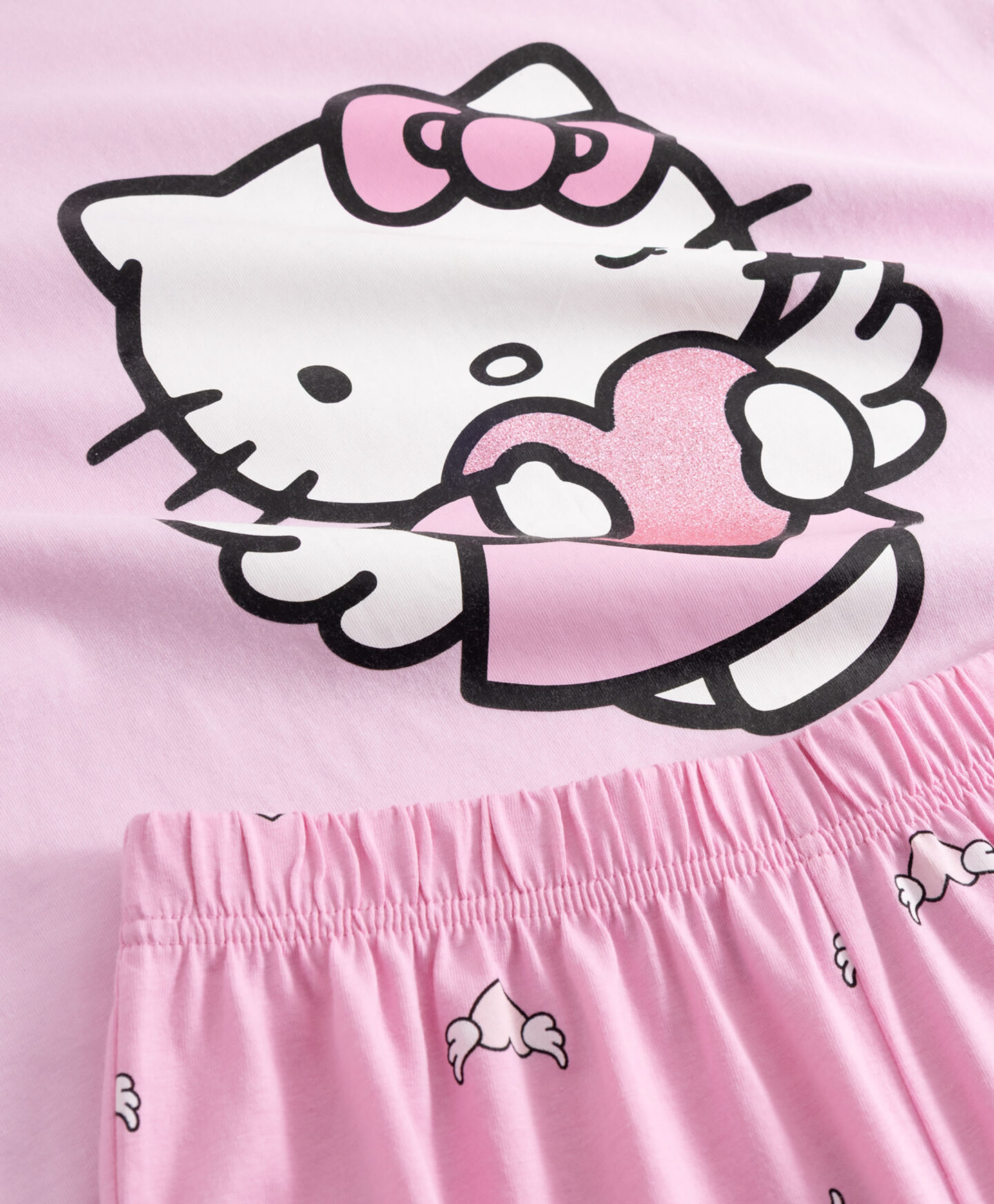 Der Hello-Kitty-Pyjama aus 100% Baumwolle besteht aus einem kurzärmligen Oberteil und einer Hose.