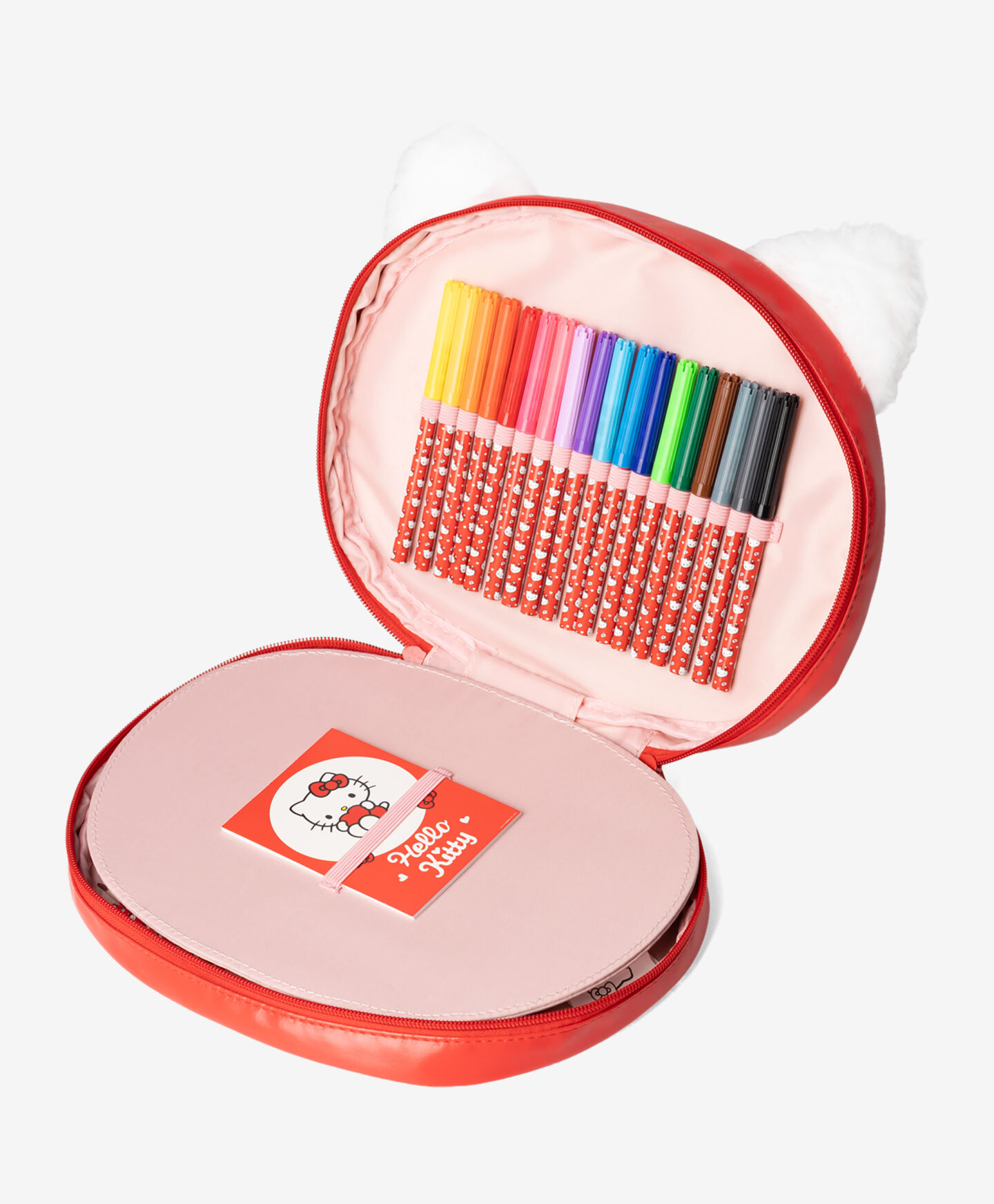 Das Hello-Kitty-Schreibwarenset im Mäppchen mit 3D-Ohren enthält alles, was für den Schulalltag benötigt wird.