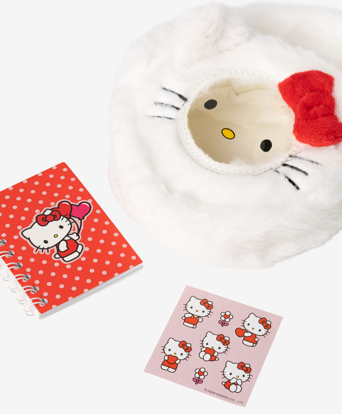 Das Hello-Kitty-Set besteht aus einer flauschigen Geldbörse und einem Notizbuch mit Stickern.