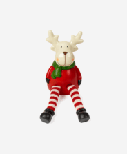 Das Keramikrentier mit baumelnden Beinen ist eine charmante Figur, die Wärme und Gemütlichkeit ausstrahlt.