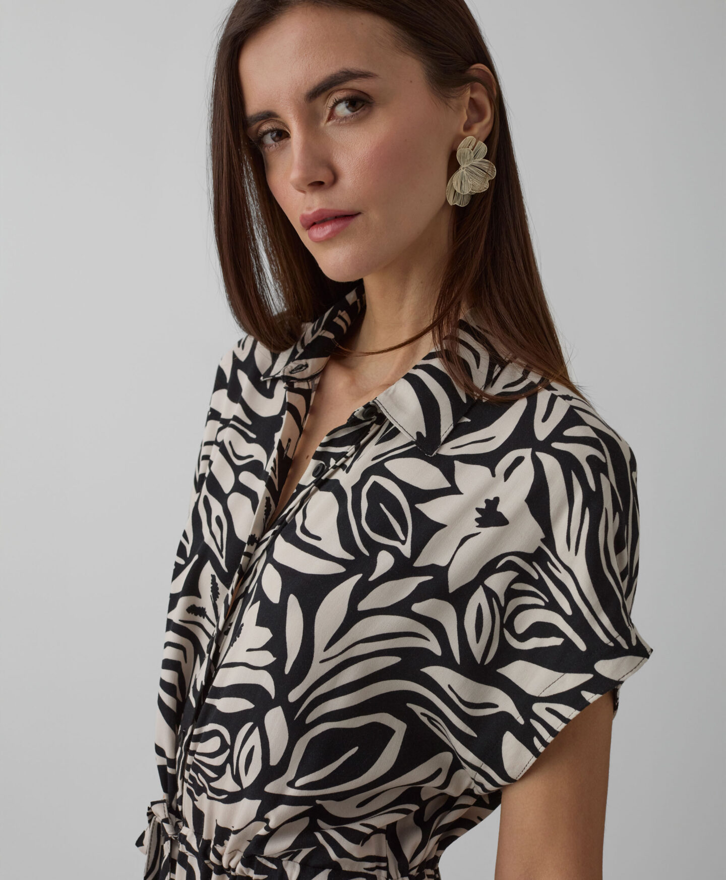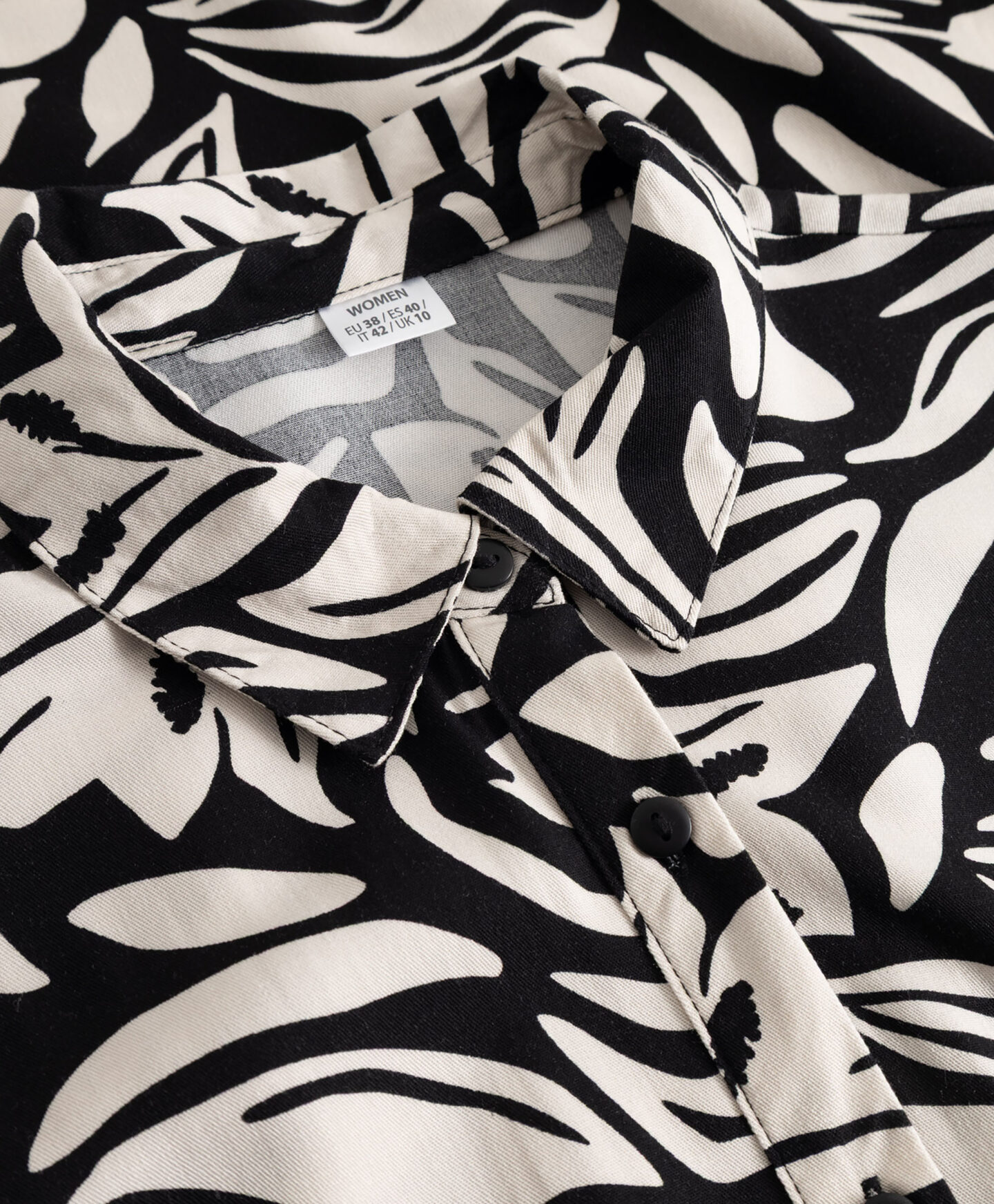 Ein Kleid aus 100% Viskose besticht durch ein schönes Muster.