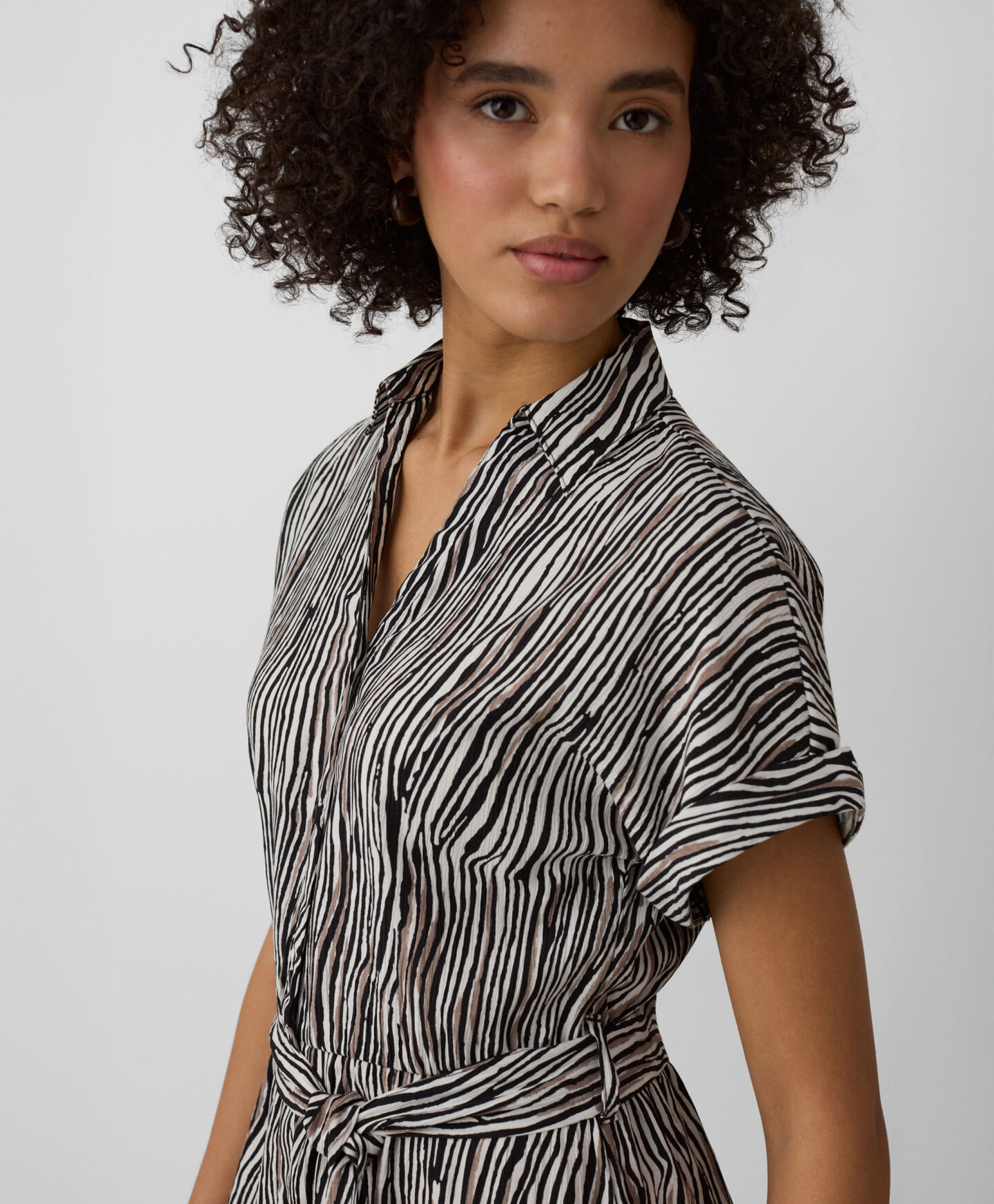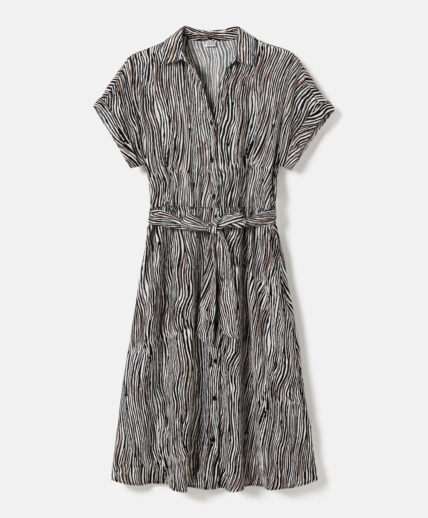 Das Kleid mit Muster und hohem Viskoseanteil eignet sich ideal für den Alltag.